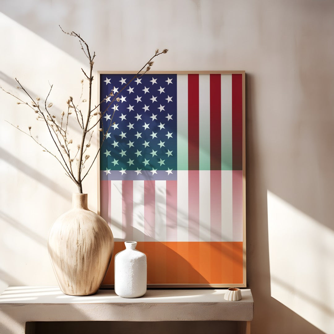Celebrate dual heritage with our Irish American Flag Design — a digital artwork that blends the stars and stripes of the United States with the bold emblem of the Irish flag. Perfect for posters, prints, social-share graphics, and more.