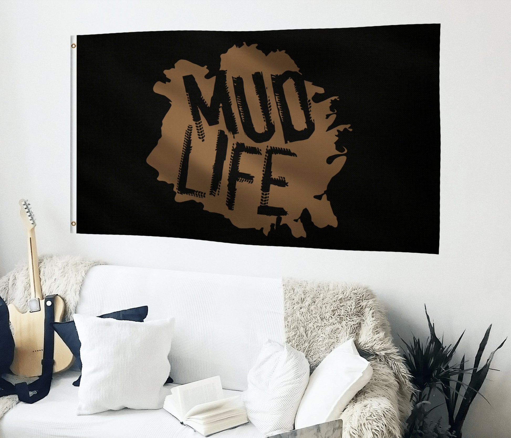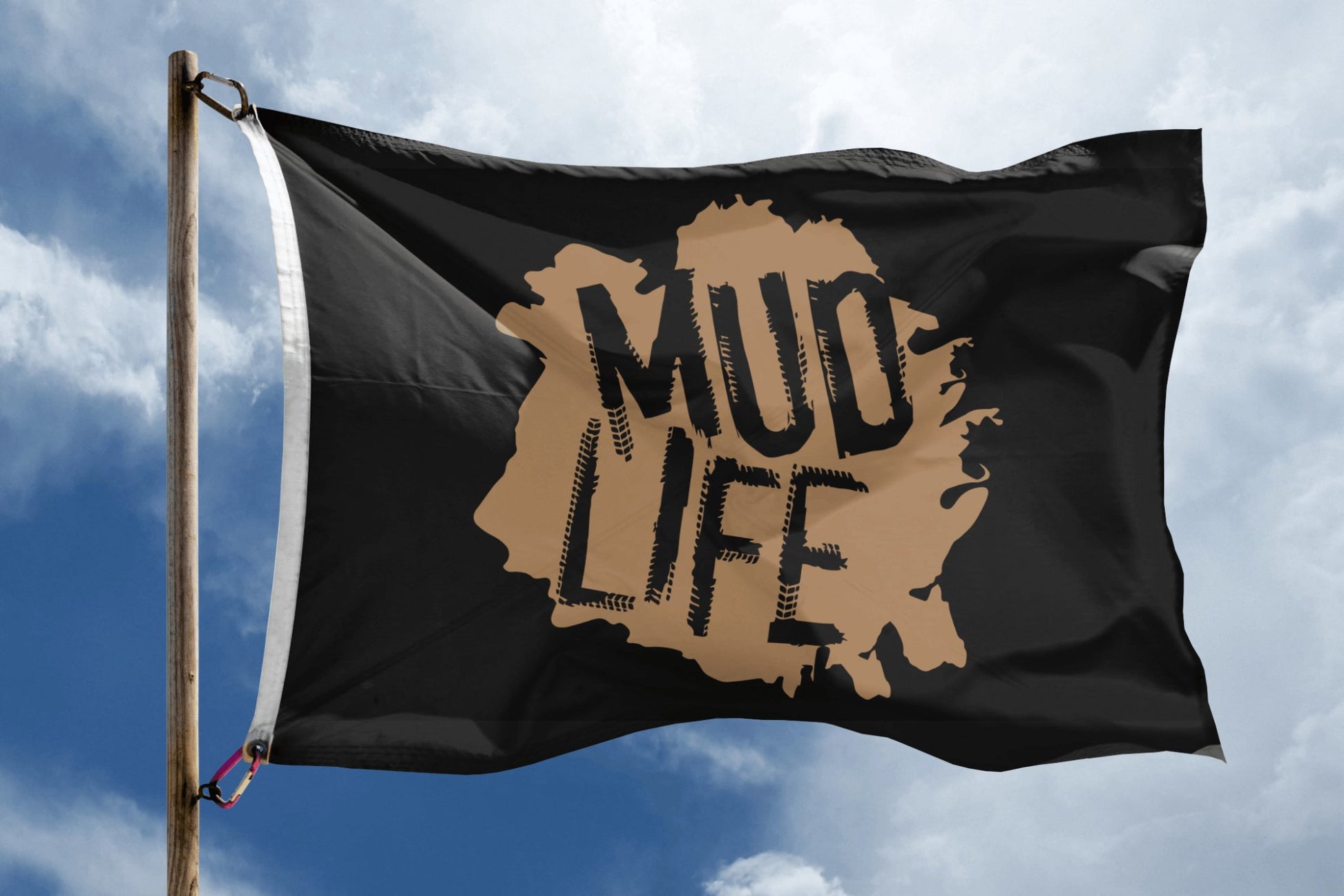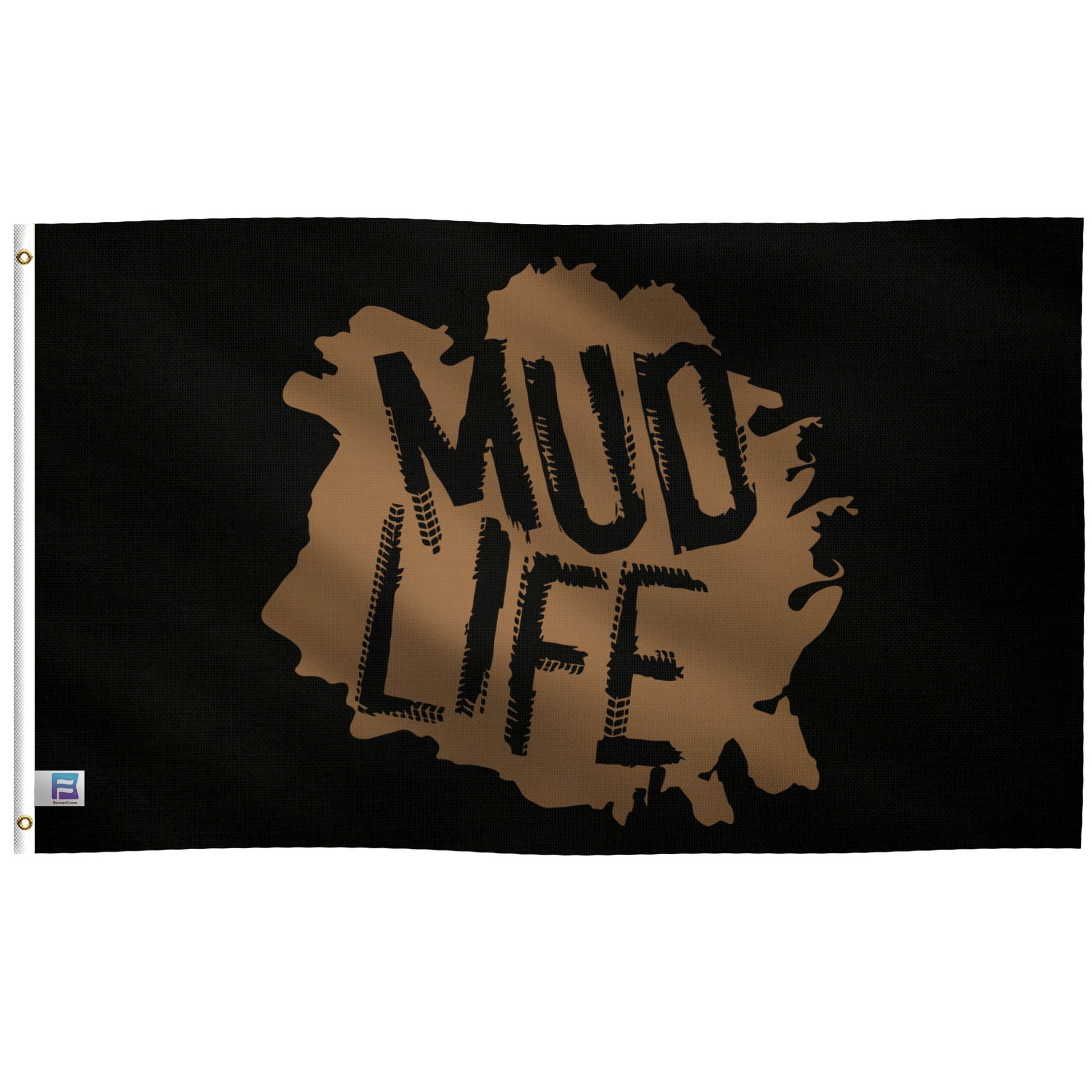 La bandera está hecha de poliéster duradero que resiste bien en exteriores. Está diseñada para resistir diversas condiciones climáticas. ¡Puedes ondear con orgullo tu bandera Mud Life, llueva o truene!