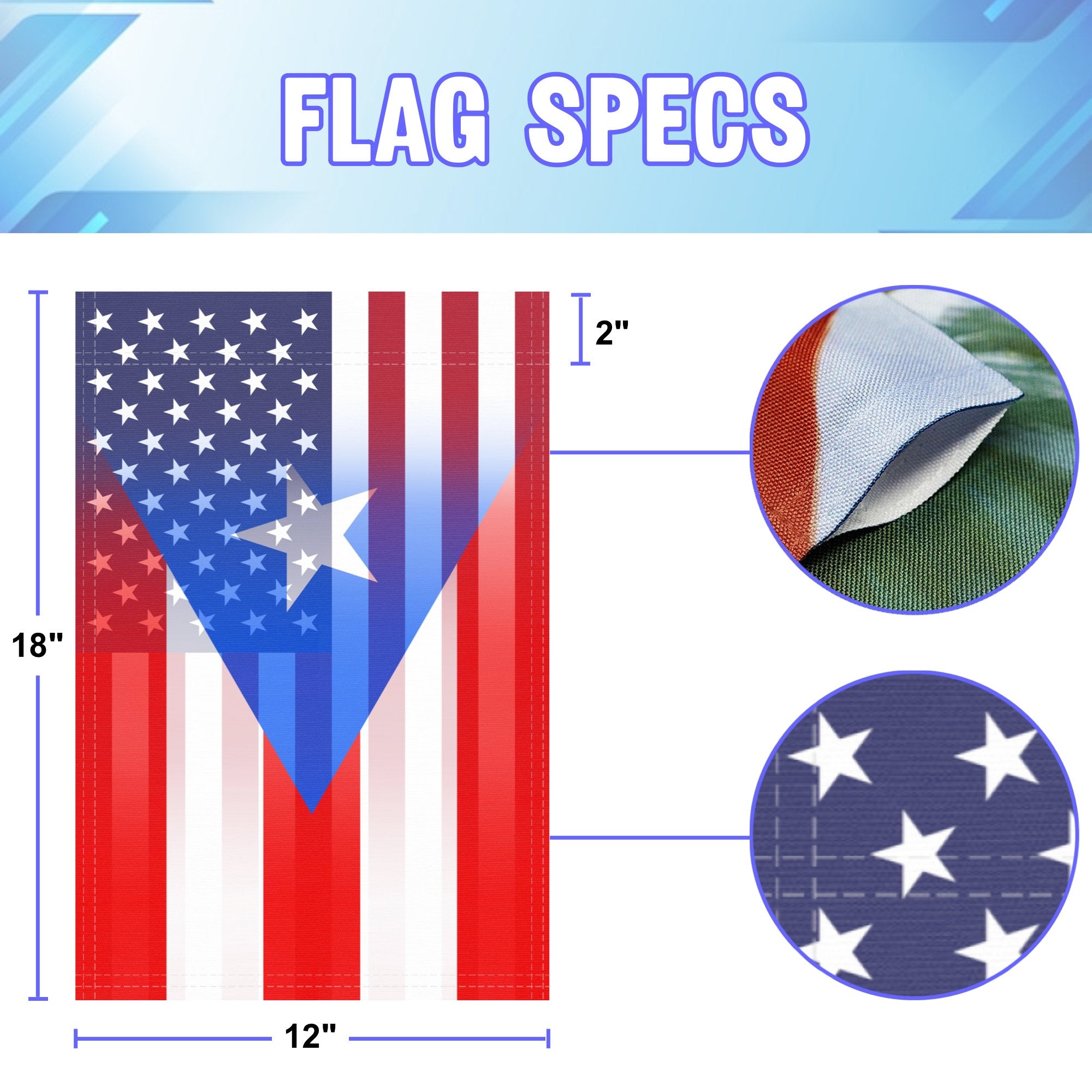 ¡Exhiba su herencia, orgullo y unidad con la bandera puertorriqueña americana para jardín ! Esta bandera de hermoso diseño es perfecta para celebrar el patrimonio cultural, festividades nacionales y ocasiones especiales.