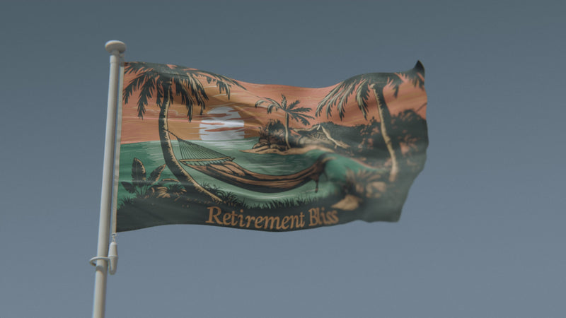 Celebra los momentos especiales y los hitos de la vida con la bandera "Jubilación Felicidad" . Esta llamativa bandera es perfecta para destacar tu celebración, evento o mensaje.