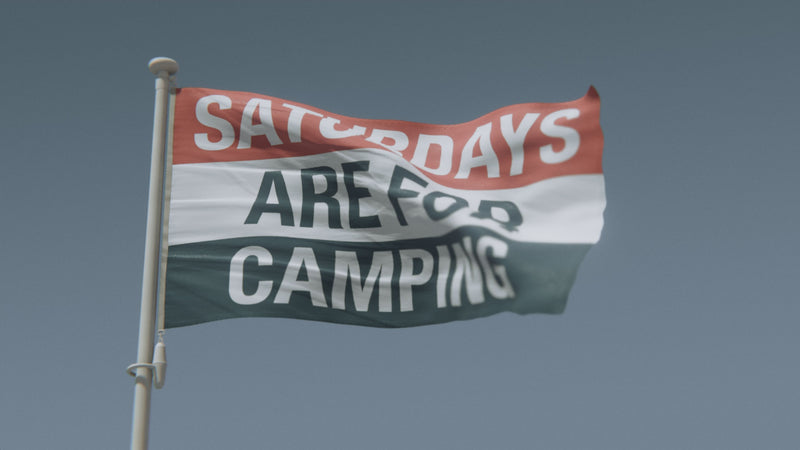 Celebra tus intereses con la bandera "Los sábados son para acampar ". Esta llamativa bandera es perfecta para expresar tu entusiasmo por tu actividad o grupo favorito.
