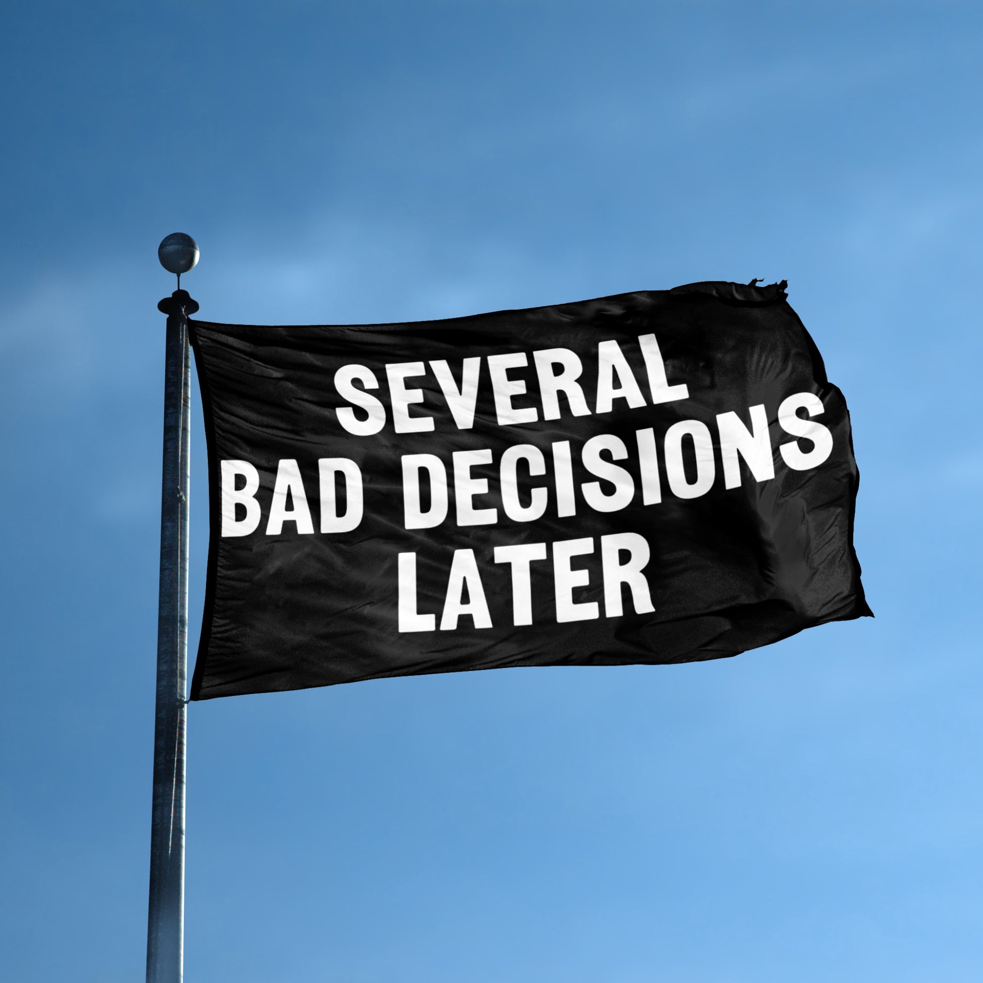 Introducing the Several Bad Decisions Later Flag — a playful, meme-ready prop from Bannerfi that instantly elevates any party, gathering, or photo moment.