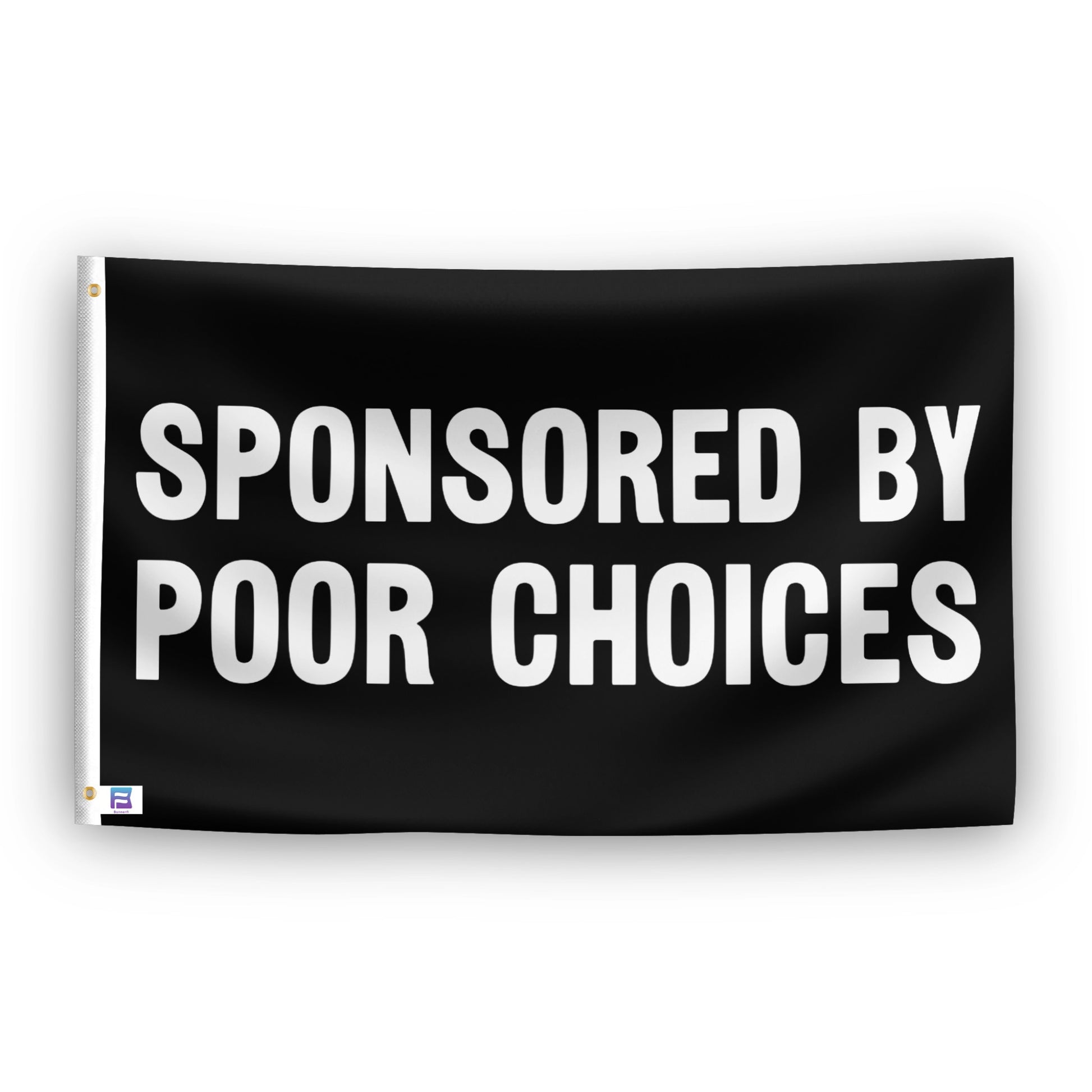 Introducing the Sponsored By Poor Choices Flag from Bannerfi — a playful, conversation-starting banner designed for fans of bold memes and big party energy.