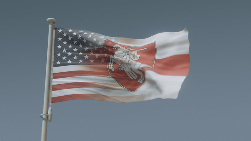 Drapeau hybride biélorusse-américain (armoiries de Pahonia)