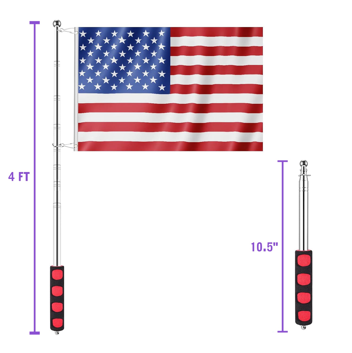 - 8-Section Telescoping Design: Extends from a compact 10 inches to 4 feet (1.2 m), suitable for 3′ × 5′ or smaller flags.