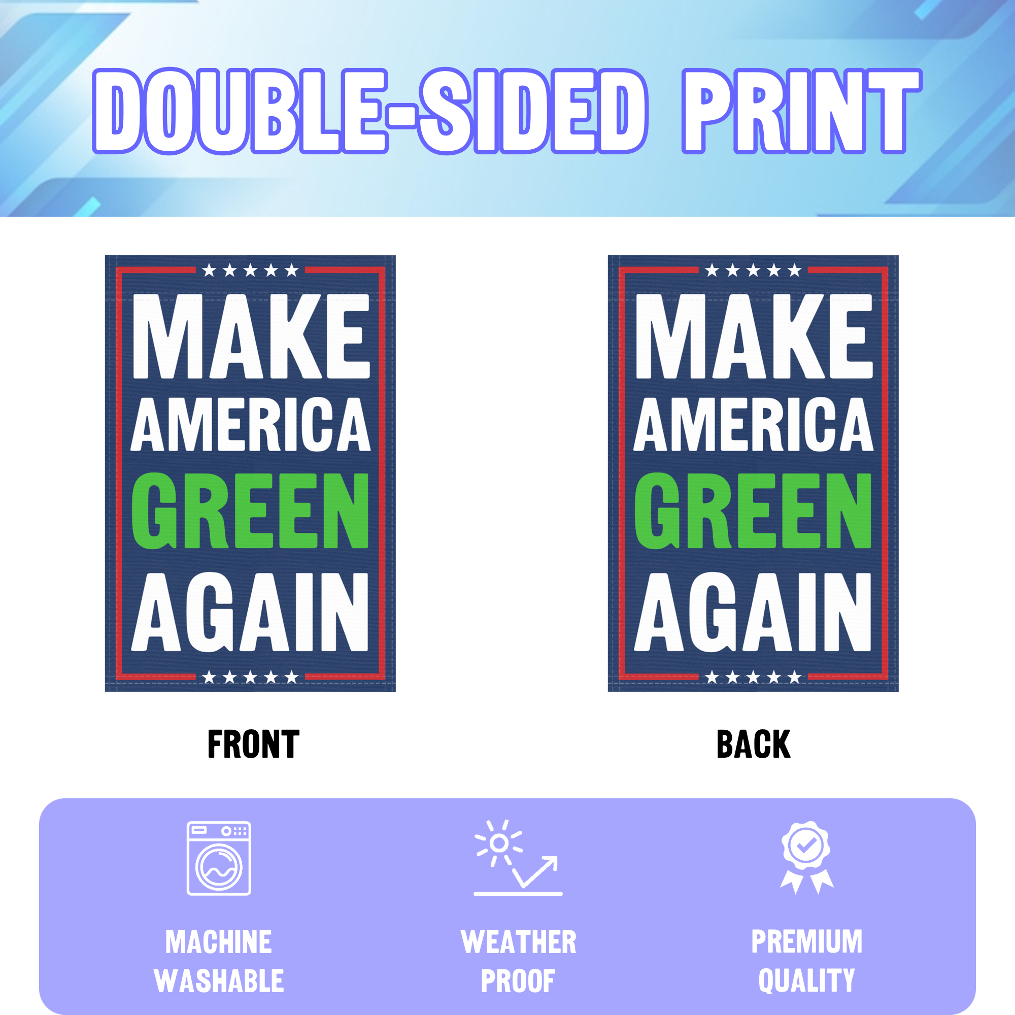 Affichez vos convictions et mobilisez-vous pour le changement avec le drapeau de jardin « Make America Green Again » ! Ce drapeau magnifiquement conçu est parfait pour susciter le débat public, défendre les droits et susciter l’action politique.