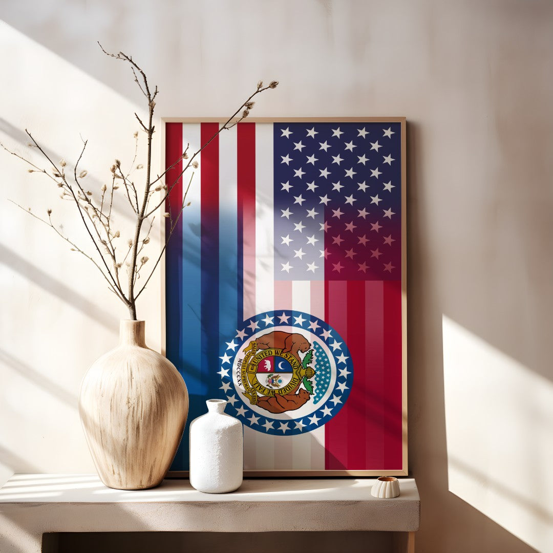 - Design: Seamless fusion of the United States flag with the Missouri state flag for a bold, patriotic look.