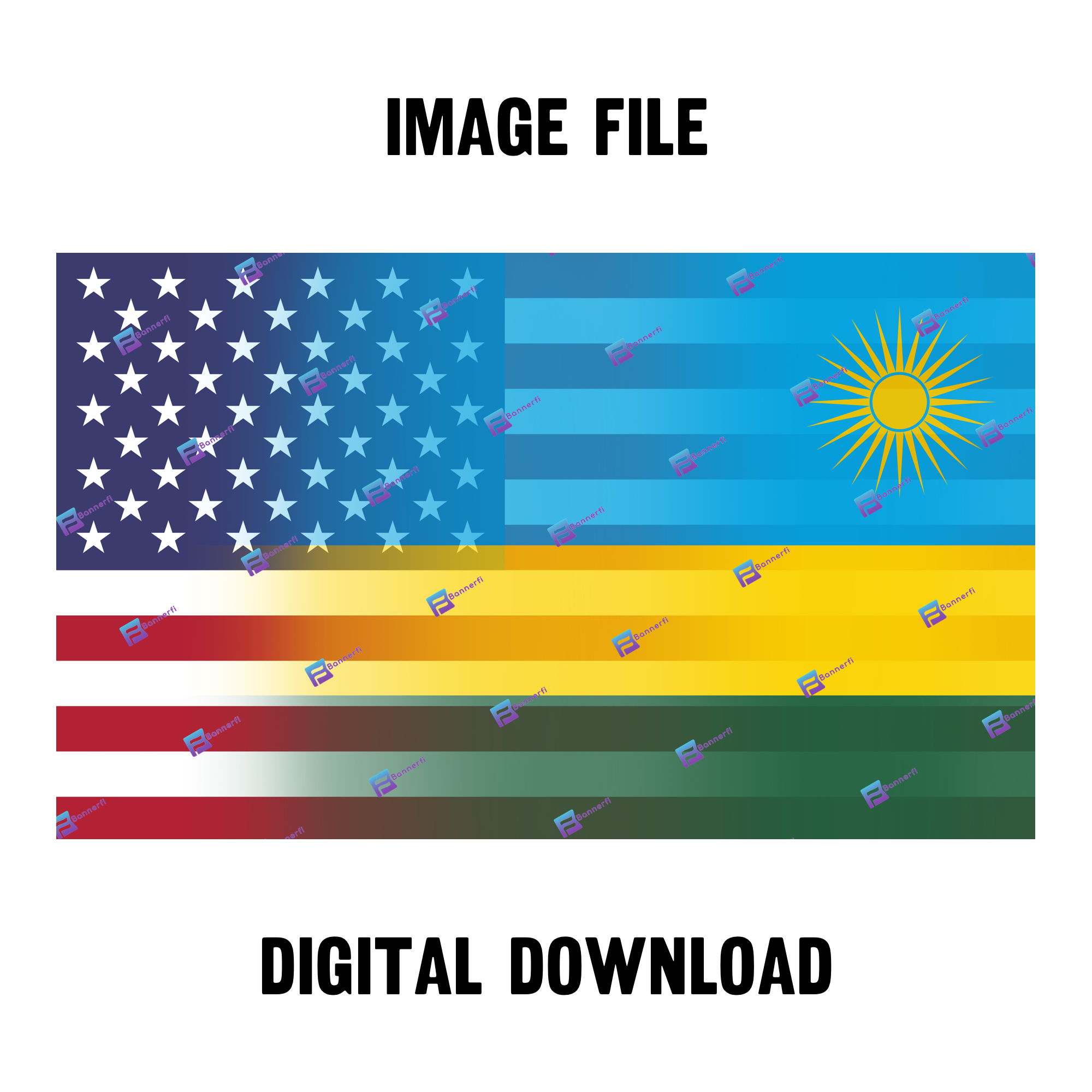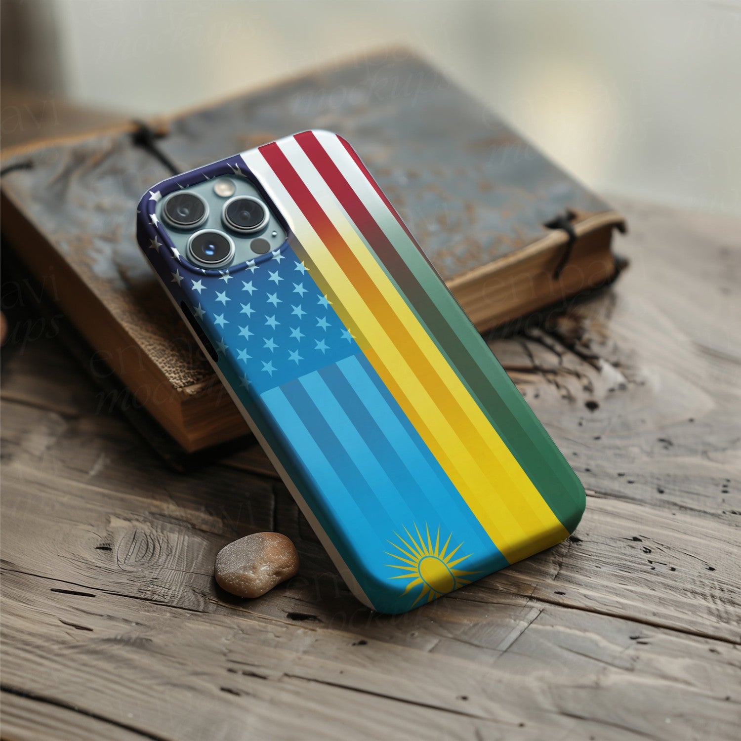 - Showcases cultural unity by blending American and Rwandan flag elements in a single, cohesive design