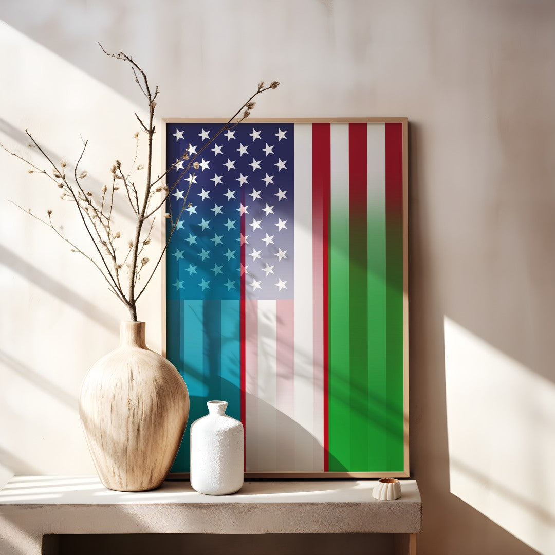 Embrace dual heritage with Uzbek American Flag Design — a digital artwork that blends the United States’ stars and stripes with a bold Uzbek motif. Perfect for creatives, educators, and anyone celebrating multicultural pride, it’s ideal for posters, prints, and social graphics.