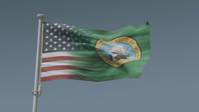 Découvrez notre mélange unique de drapeaux américains et de Washington ! Ce drapeau est un magnifique mélange du drapeau de l'État de Washington et du drapeau américain. Il représente la fierté de Washington et des États-Unis tout entiers.