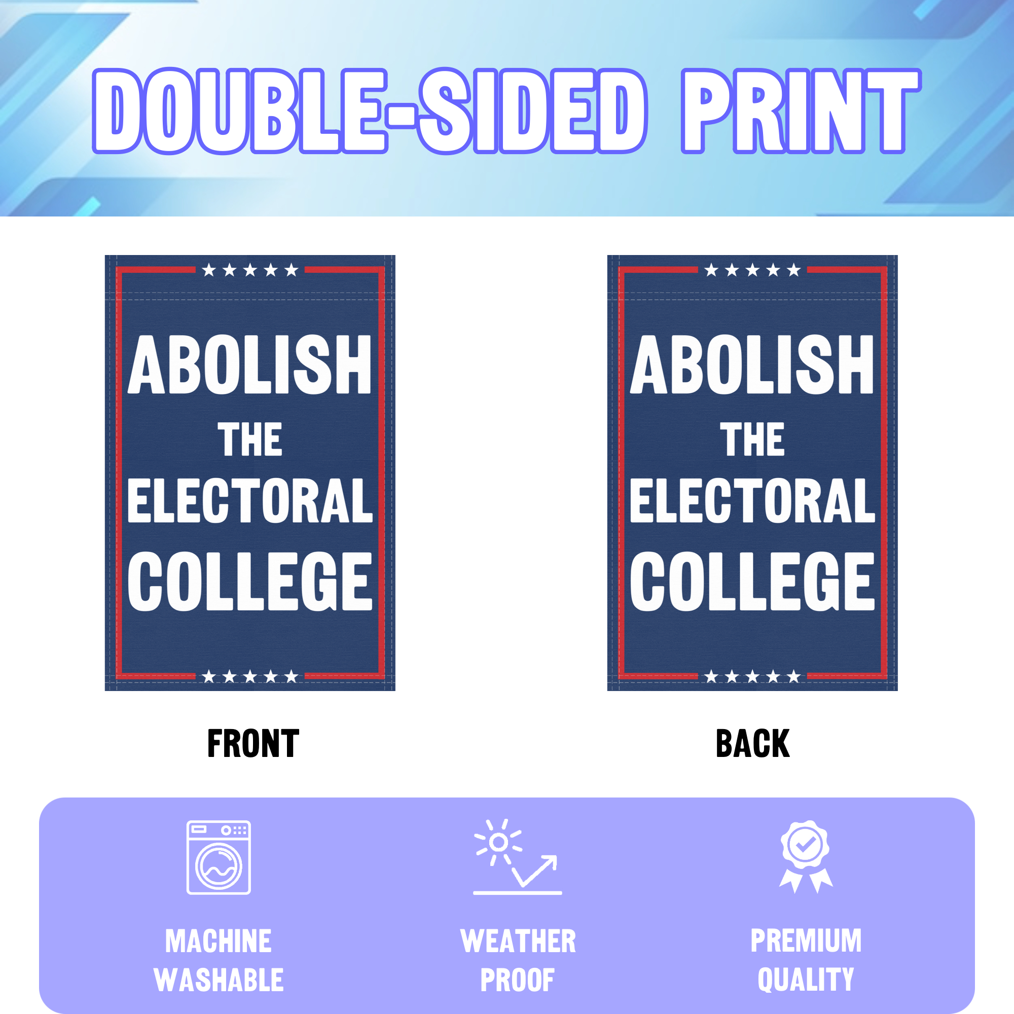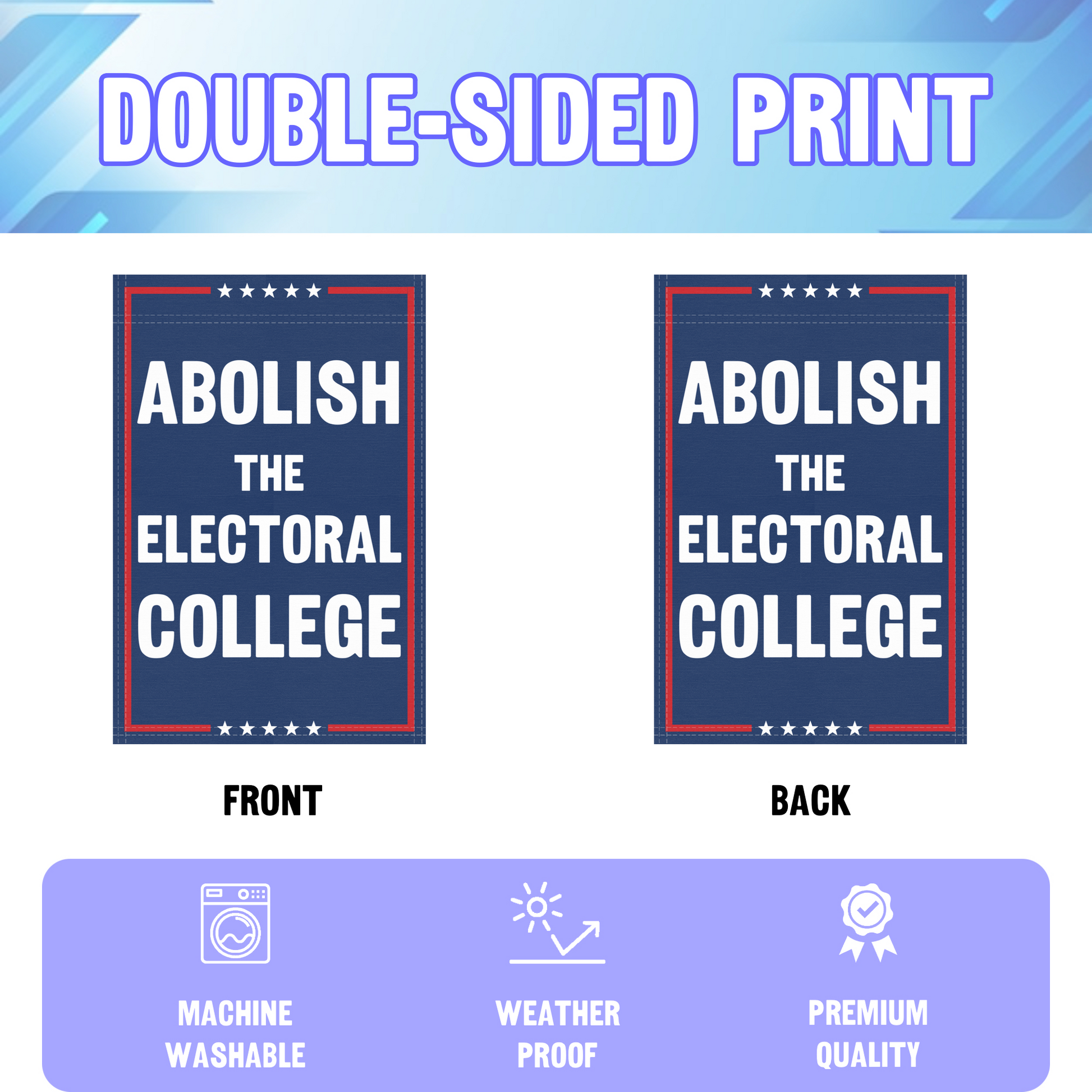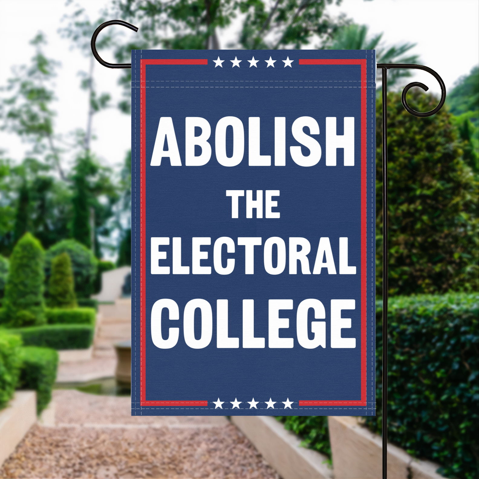 The Abolish The Electoral College Garden Flag is a bold outdoor banner for anyone who wants to spark conversation and champion democratic values in their own yard. Sized at 12x18 inches, it fits standard garden flag poles and is built for durable, everyday display in homes, gardens, and community spaces.