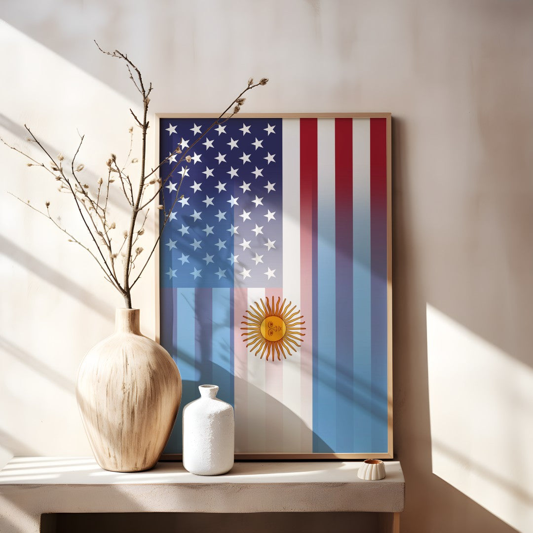 Celebrate dual heritage with the Argentinean American Flag Design, a striking digital artwork that blends the stars and stripes with the iconic Argentinean emblem. Ideal for posters, prints, social graphics, and gifts, this ready-to-use JPEG delivers instant download so you can showcase your blended-flag design right away.