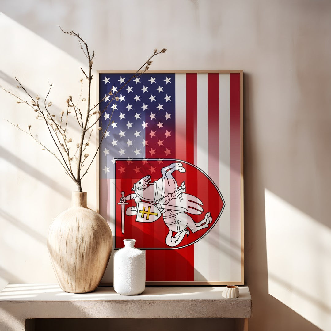 Celebrate dual heritage with a bold, contemporary digital artwork that merges the United States Stars & Stripes with the Belarusian Pahonia emblem. Designed for creators who want standout posters, prints, and share-ready graphics, this design captures cultural unity in a single striking image.