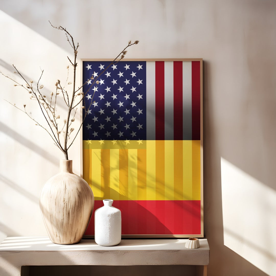 Belgian American Flag Design merges the United States stars and stripes with the bold Belgian flag motif into a single, cohesive digital artwork. Ideal for posters, prints, social-share graphics, and thoughtful gifts, this design lets you celebrate dual heritage with a modern, high-impact visual.