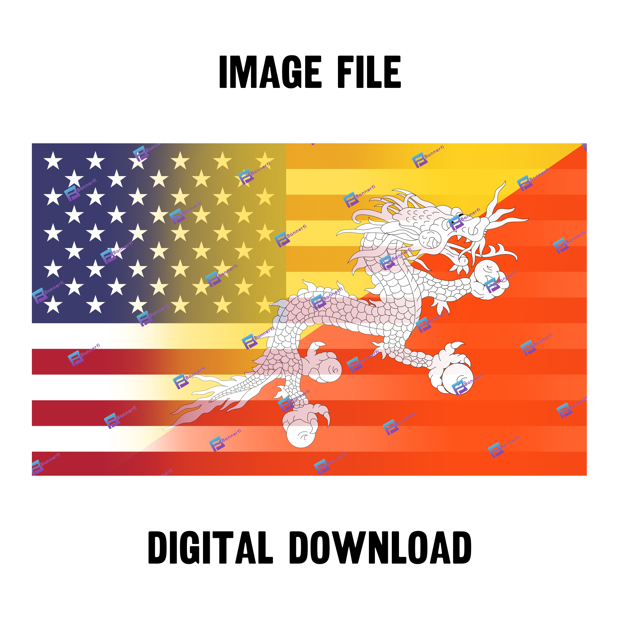 Introduction — Bhutia American Flag Design is a digital artwork by Bannerfi that blends the United States flag with the bold Bhutia emblem, creating a striking piece that honors dual heritage. Ideal for posters, prints, social graphics, and other digital projects.