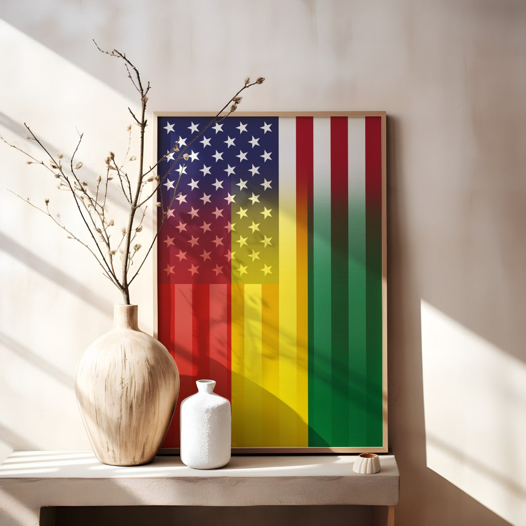 Celebrate dual heritage with a digital artwork that seamlessly blends the stars and stripes of the United States with the bold Bolivian flag emblem. Crafted for posters, prints, social-share graphics, and more, this versatile design from Bannerfi lets you showcase cultural pride with a modern, cohesive look.