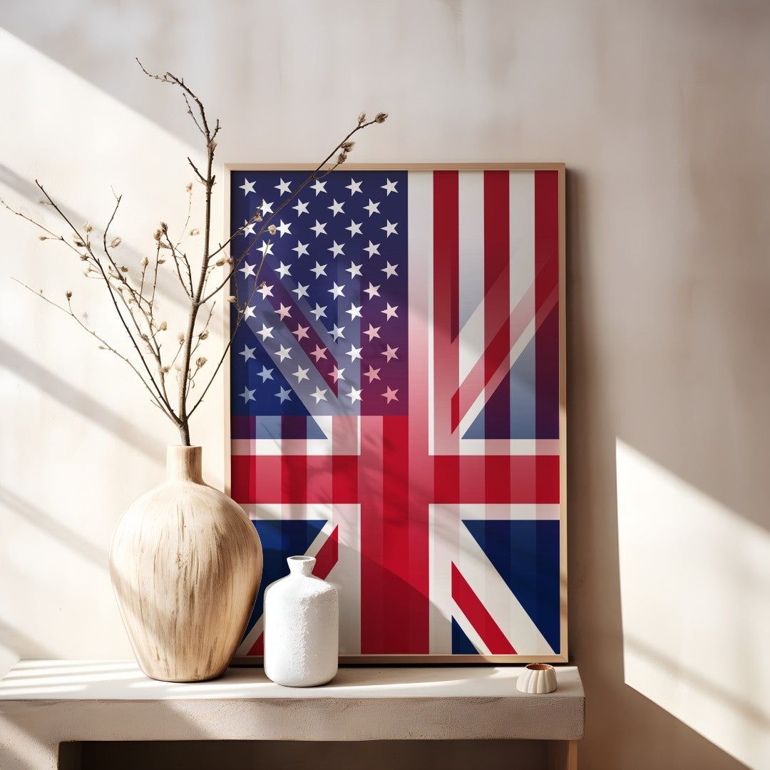 Discover a distinctive British American Flag Design—a digital artwork that harmonizes the United States stars and stripes with the Union Jack. Perfect for posters, prints, crafts, decor, and social graphics, this instant-download from Bannerfi invites you to celebrate dual heritage in any project.