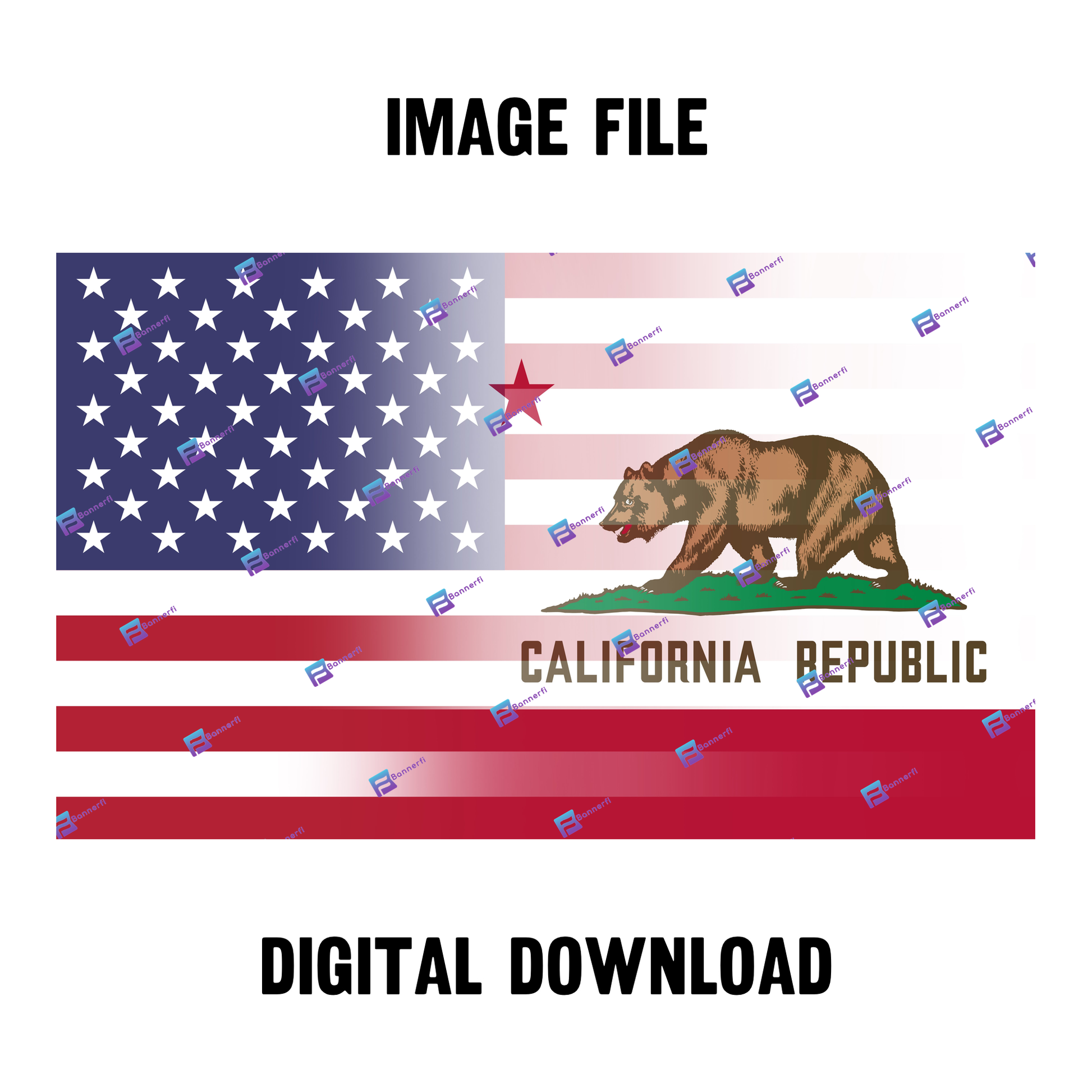 Celebrate pride with a bold digital artwork that blends the U.S. stars and stripes with California’s state flag. This high‑resolution design from Bannerfi is perfect for posters, apparel prints, web banners, hats, and more, delivered as a ready‑to‑use JPEG for instant download.