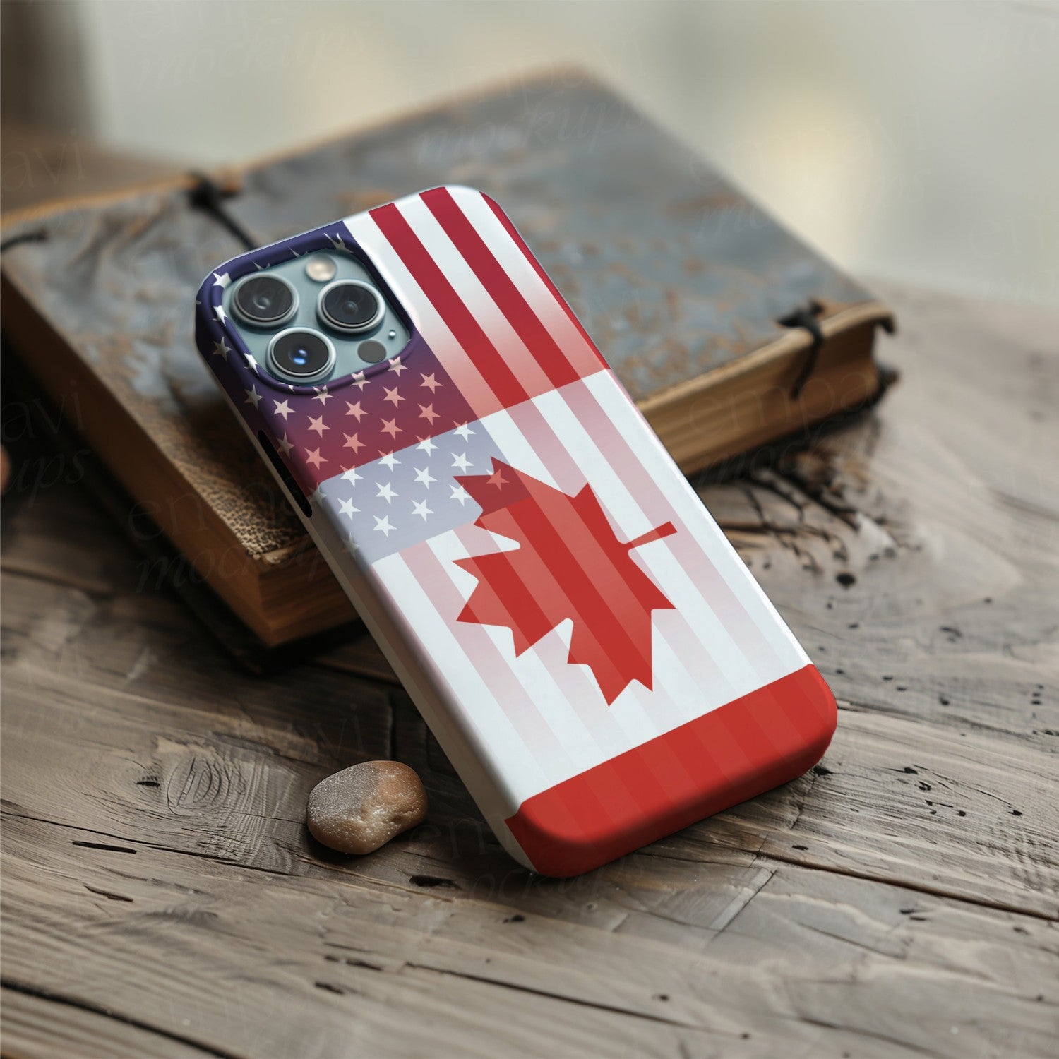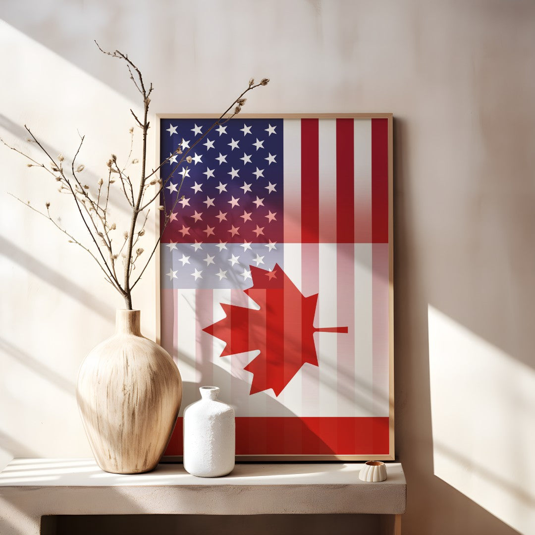 - Design: A cohesive blended flag composition that harmoniously combines United States and Canadian symbolism in a modern look.