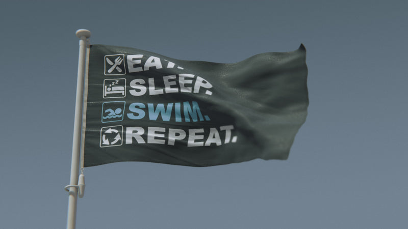 Celebrate everyday passions with the Eat Sleep Swim Repeat Flag from Bannerfi — a bold outdoor flag designed for swimmers, pool lovers, and anyone who loves a playful nod to daily routines. Perfect for wall displays, yard flagpoles, or event setups, it adds personality to homes, poolsides, and gatherings.
