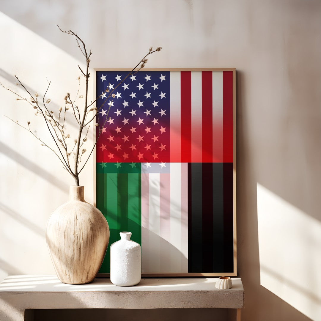 Emirati American Flag Design is a digital artwork from Bannerfi that blends the stars & stripes with Emirati flag-inspired elements to celebrate dual heritage. Perfect for posters, prints, social graphics, and decor, this high-resolution design is ready for instant download after checkout.