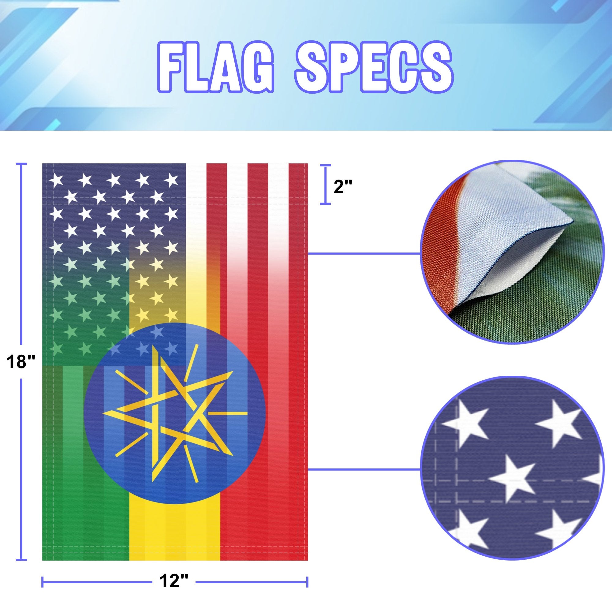 Celebrate Ethiopian American heritage with a durable, outdoor-ready garden flag. Sized at 12x18 inches, it’s ideal for yards, gardens, and patios, and designed to endure the elements. From Bannerfi, a trusted name in home and garden flags, this piece expresses pride and unity with every display.