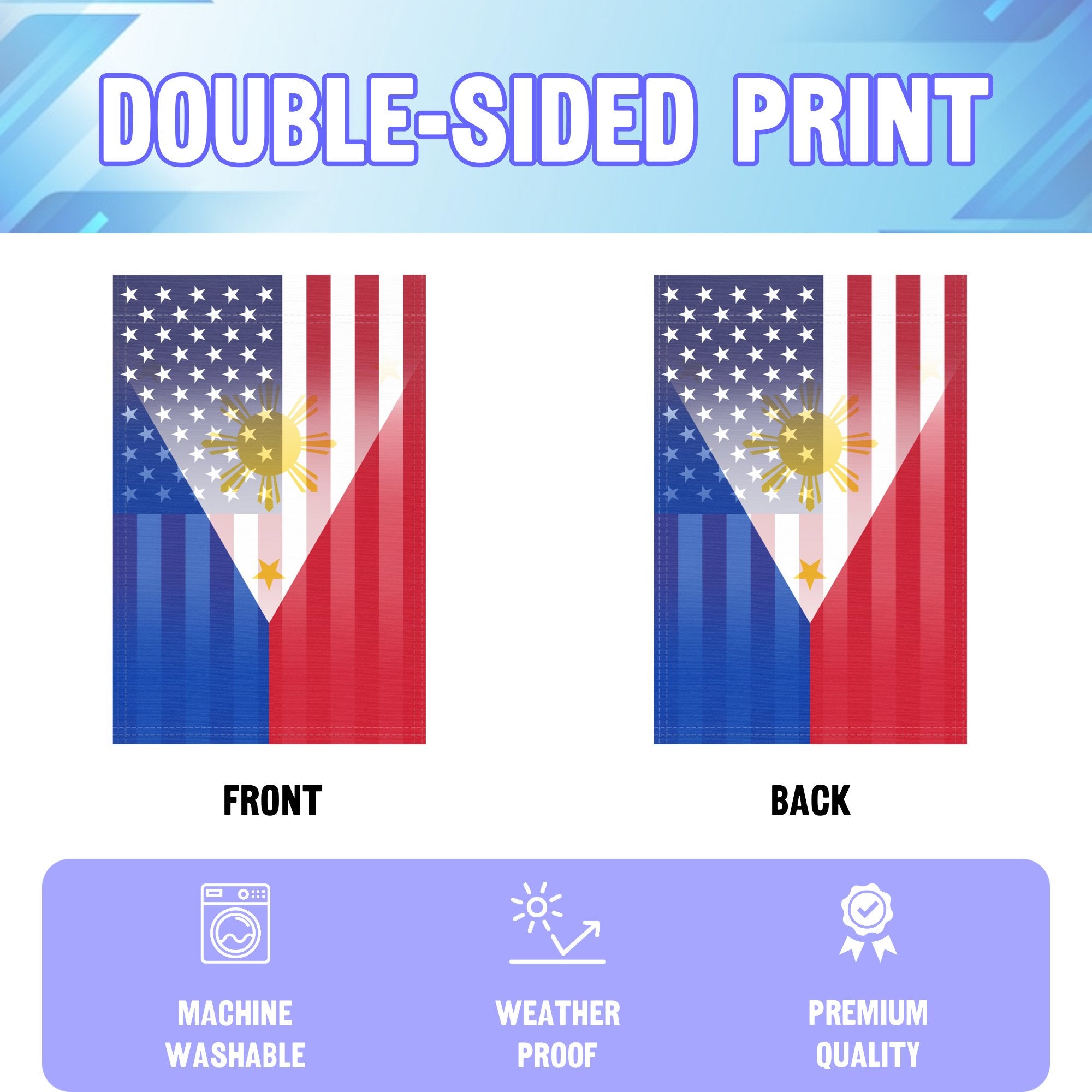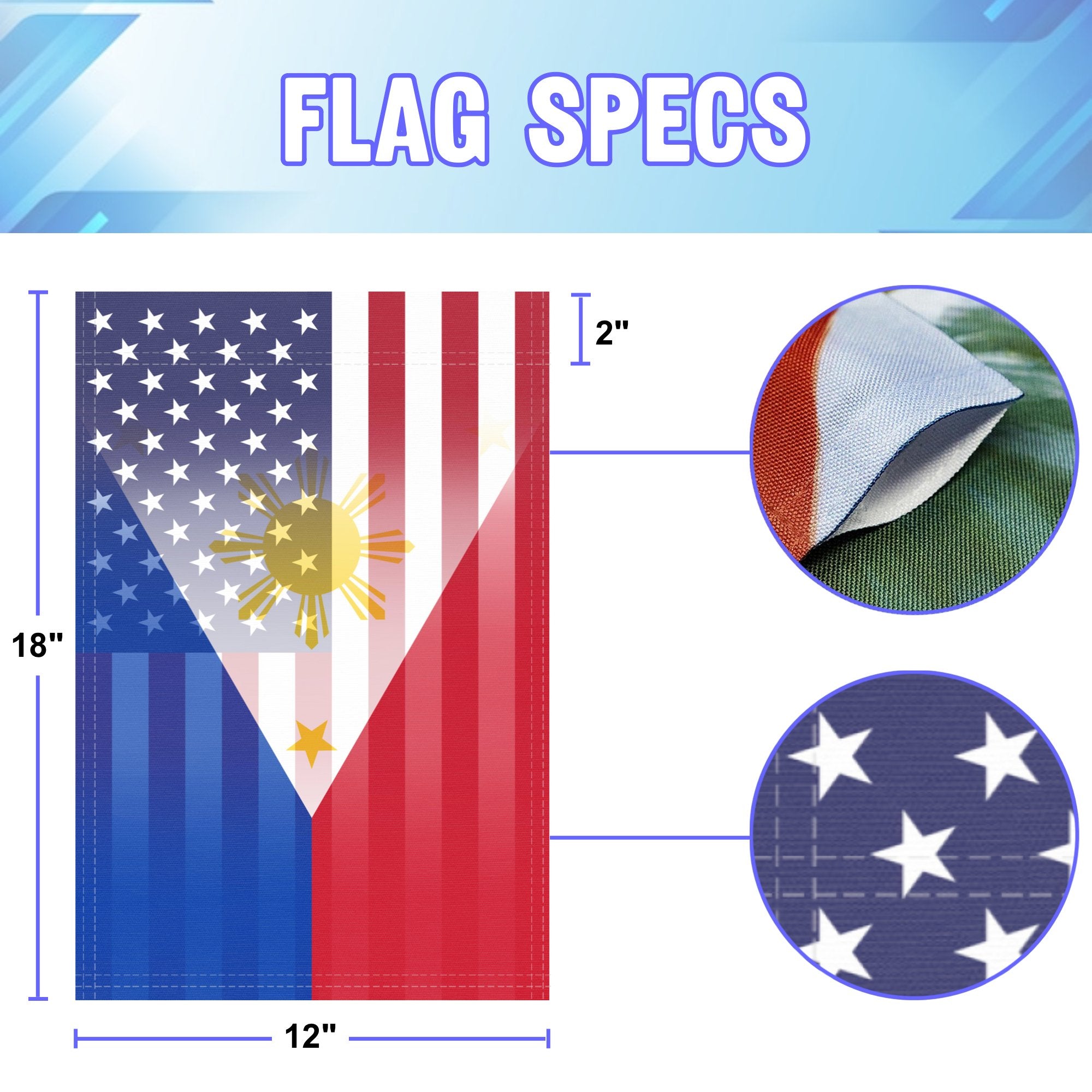 Celebrate Filipino American heritage with a garden flag designed for outdoor pride. This 12x18 inch flag blends iconic symbols in a single, vibrant display—perfect for yards, gardens, patios, and welcoming gatherings.