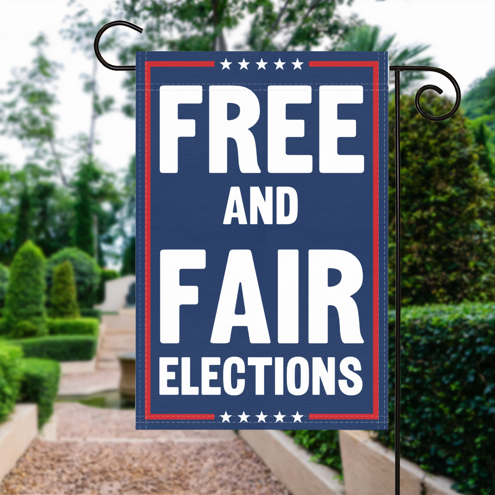 Show your commitment to democracy with the Free And Fair Elections Garden Flag. Designed for outdoor display in homes, gardens, patios, and community spaces, it’s a clear, respectful statement that champions democratic values.