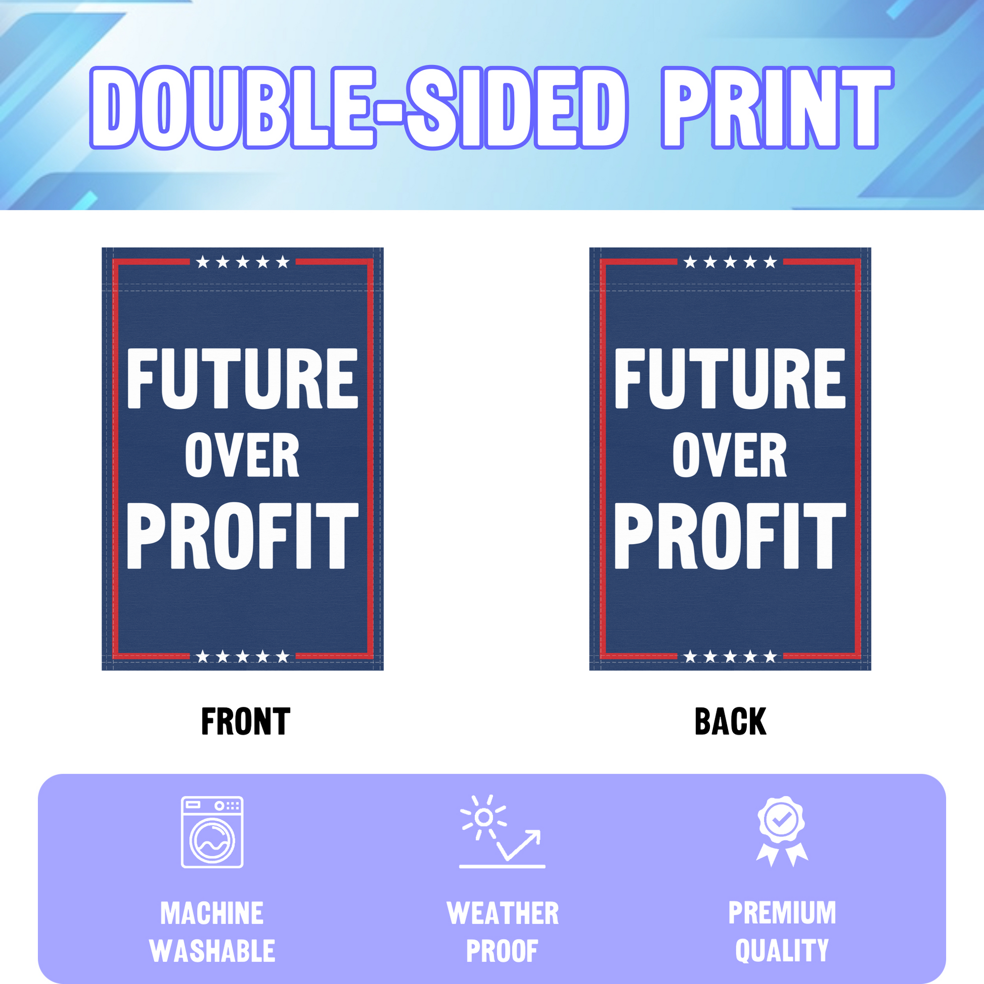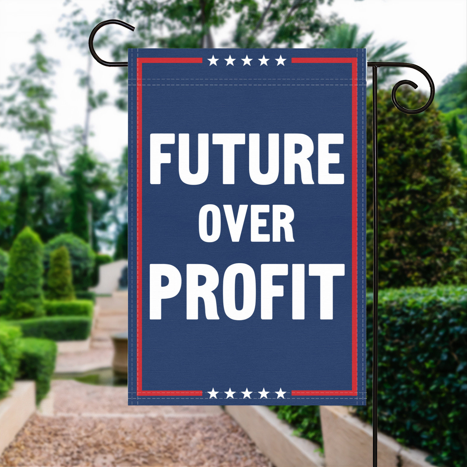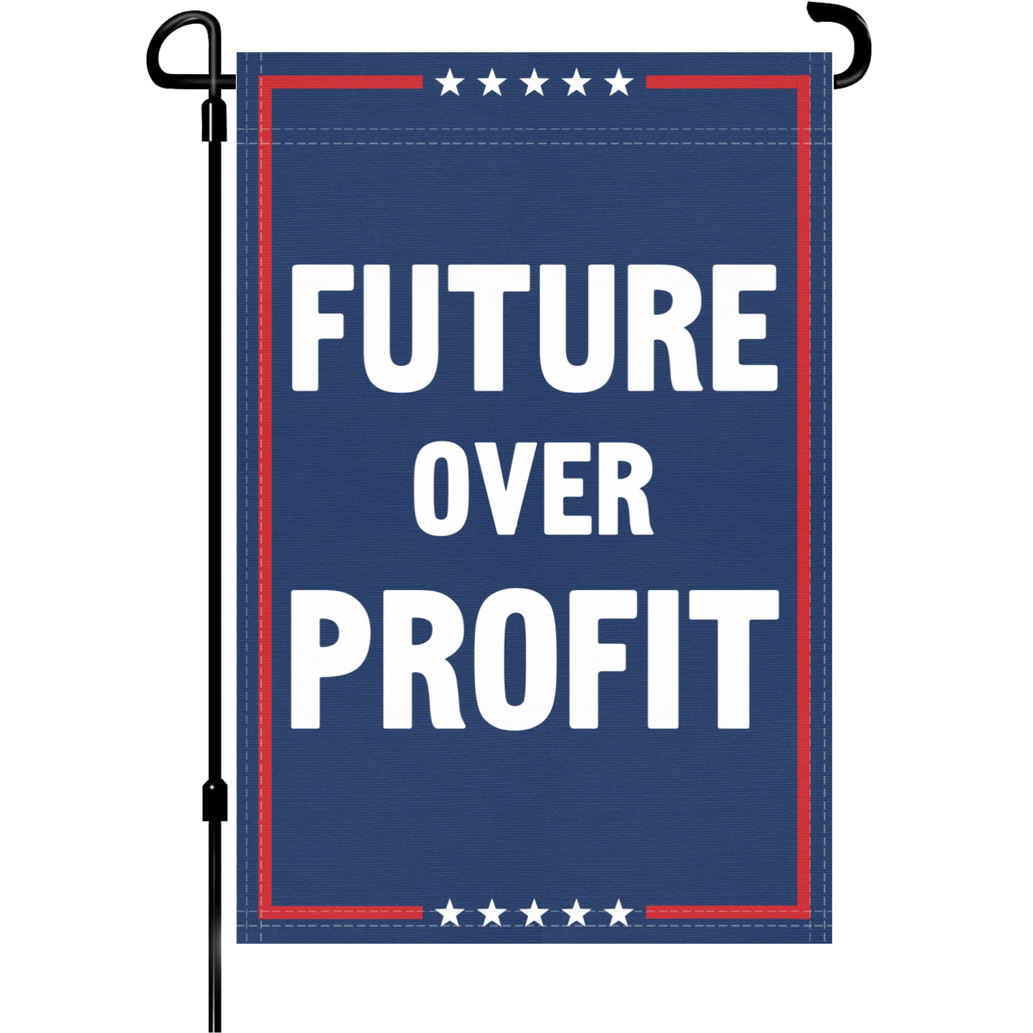 Display your convictions in outdoor space with the Future Over Profit Garden Flag from Bannerfi. Designed for outdoor spaces, this 12x18 inch flag is built to be read from every angle, making a bold, public statement that inspires discussion and action.