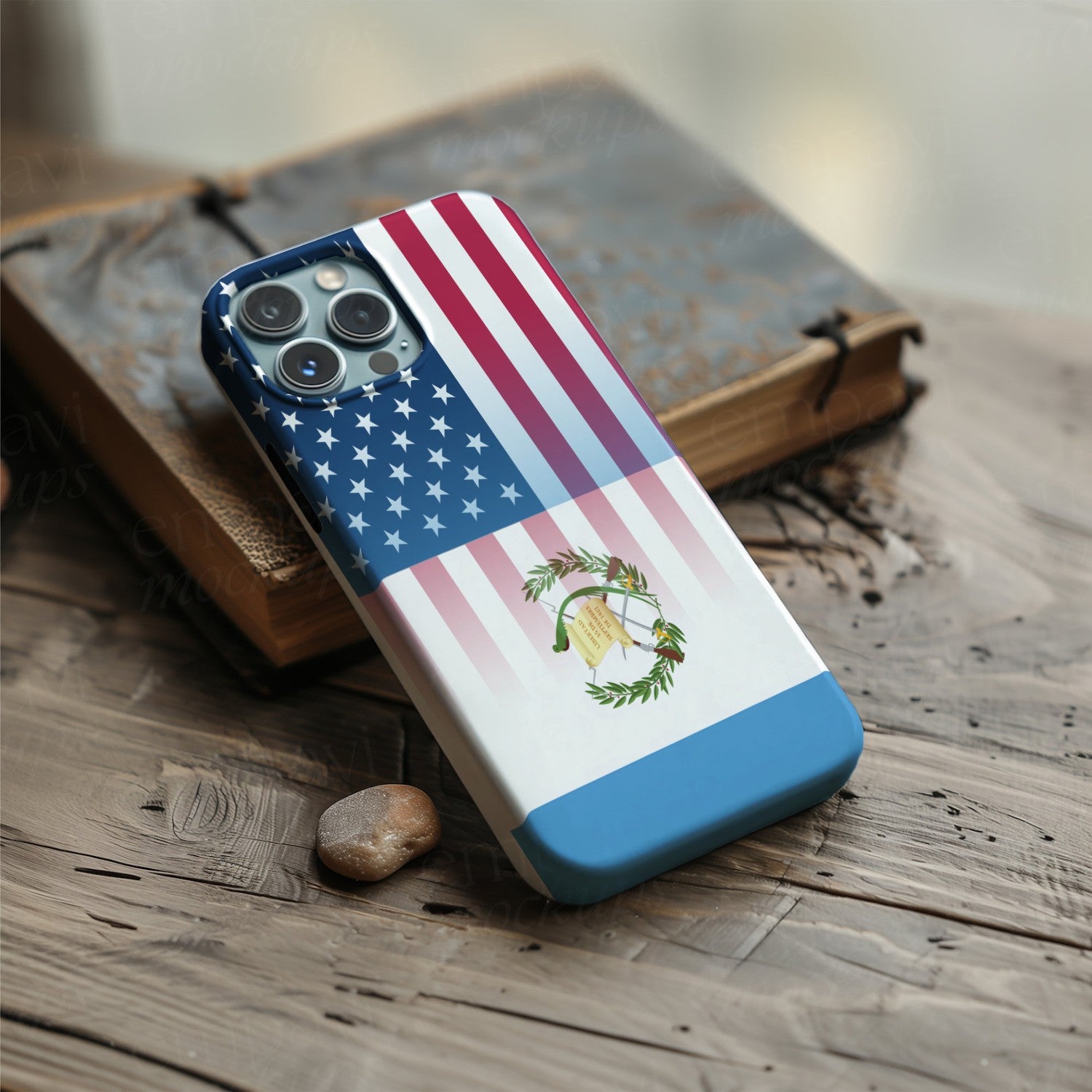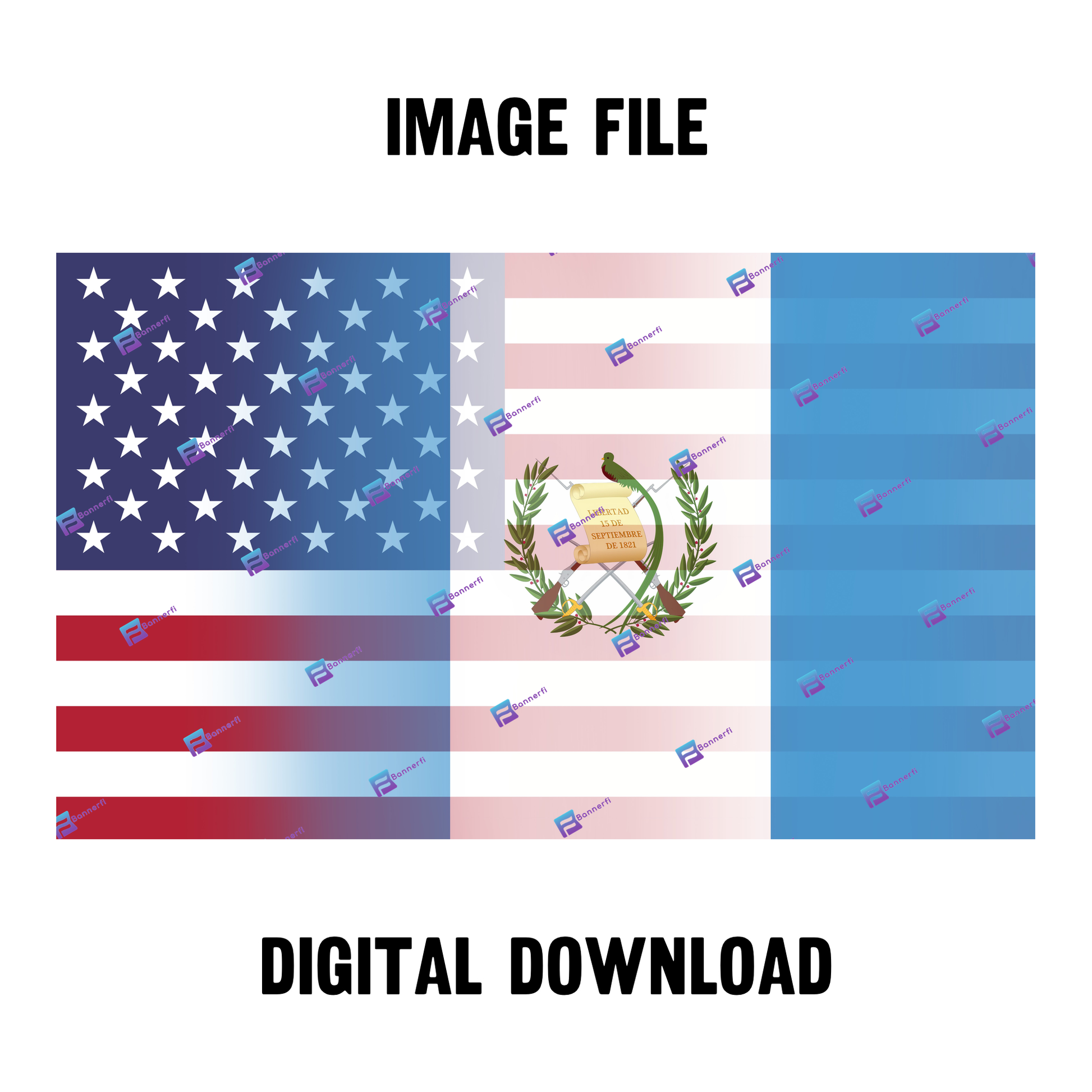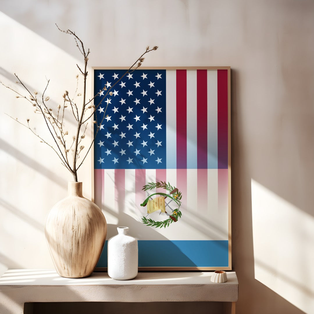 Celebrate dual heritage with a unique digital artwork that blends the United States flag elements with the bold emblem of the Guatemalan flag. This versatile design is perfect for posters, prints, social graphics, and other digital projects.