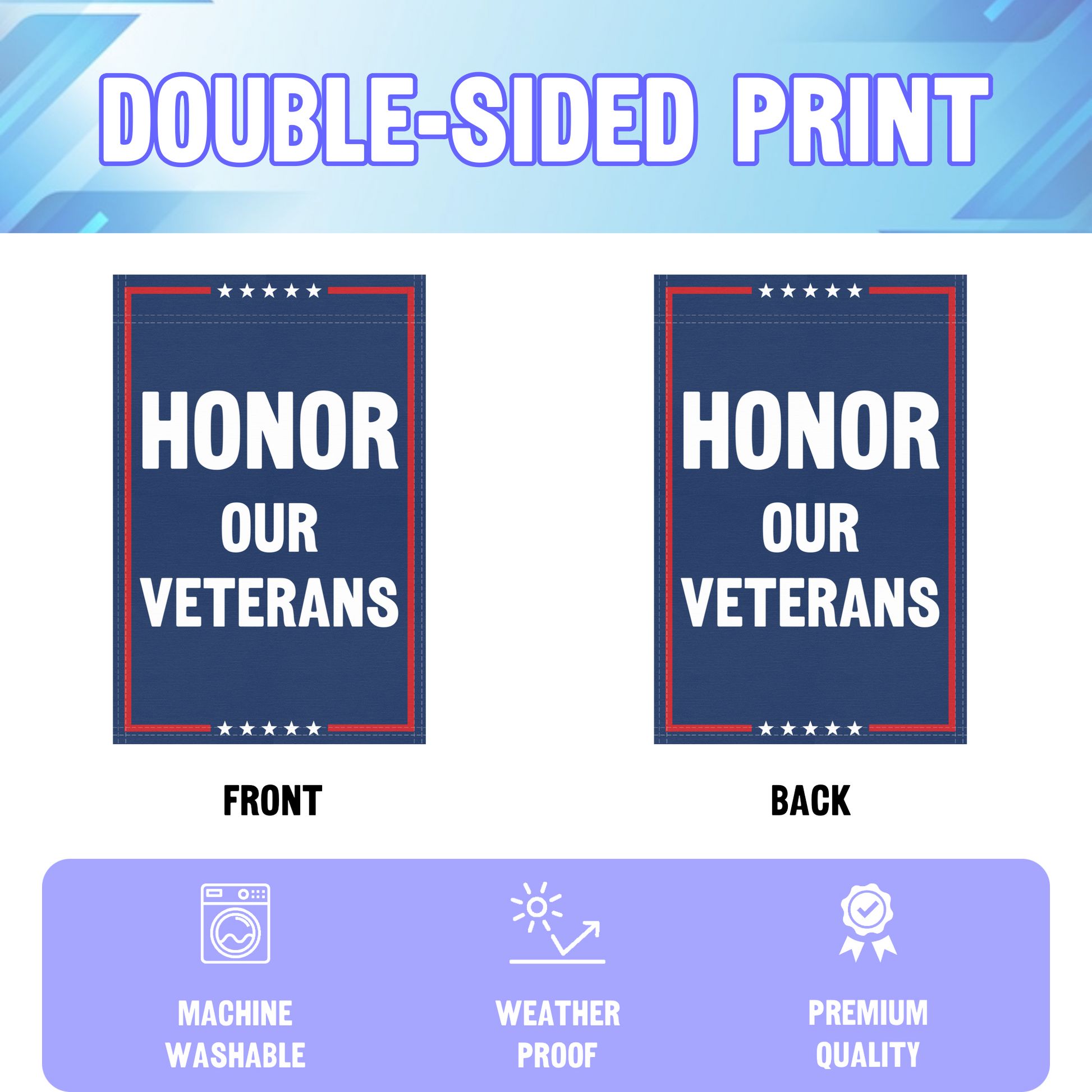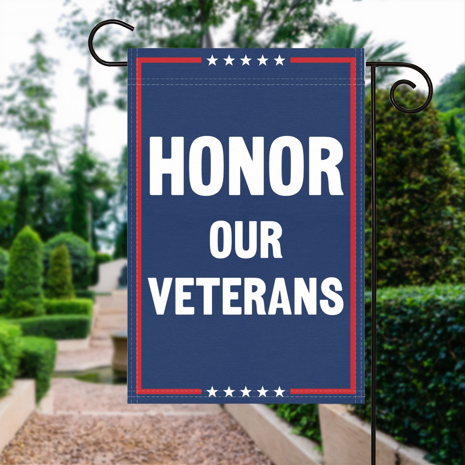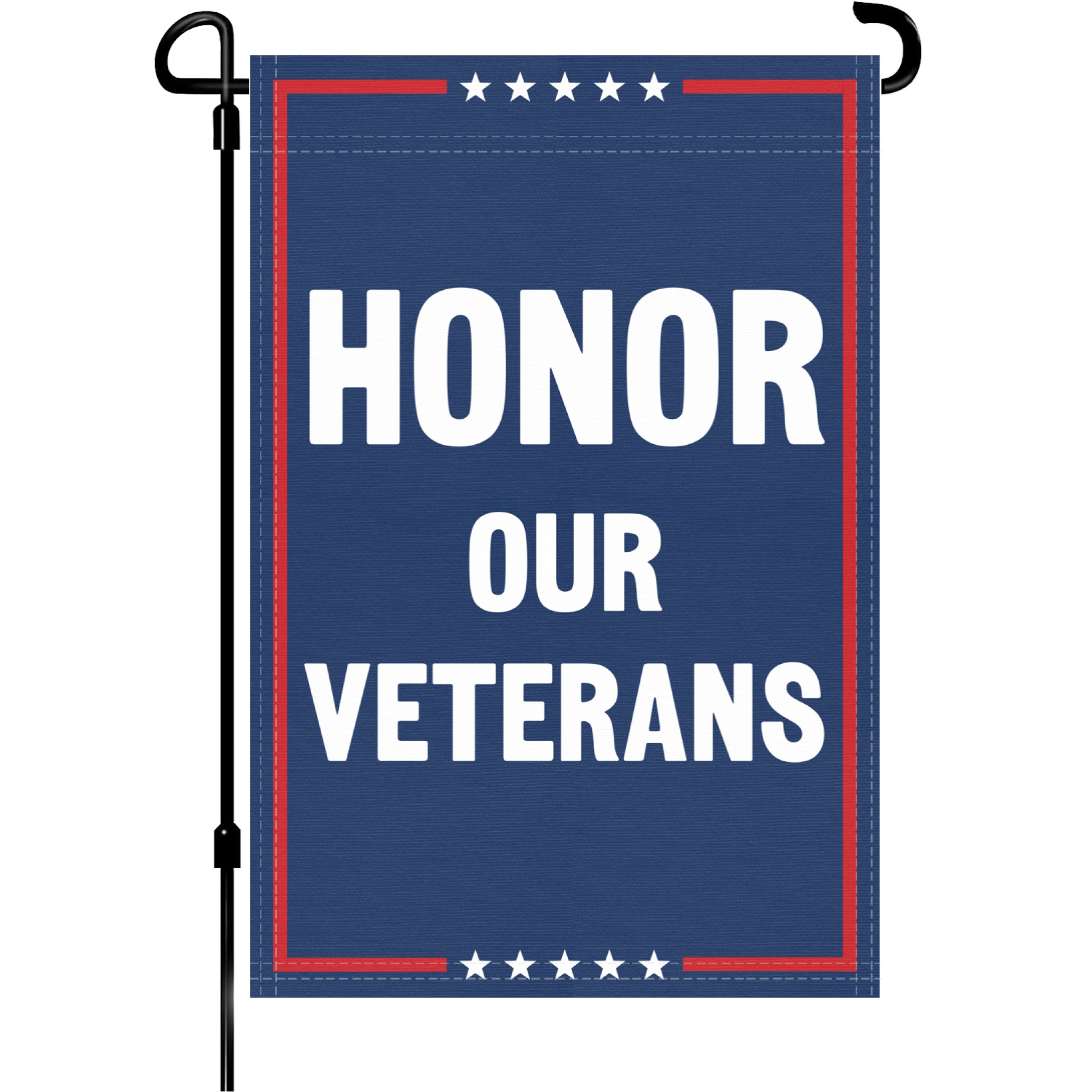 Display your convictions with the Honor Our Veterans Garden Flag from Bannerfi. This 12x18 inch outdoor flag is crafted for yards, gardens, patios, and other outdoor spaces, featuring a bold, high-contrast design that remains visible from every angle.