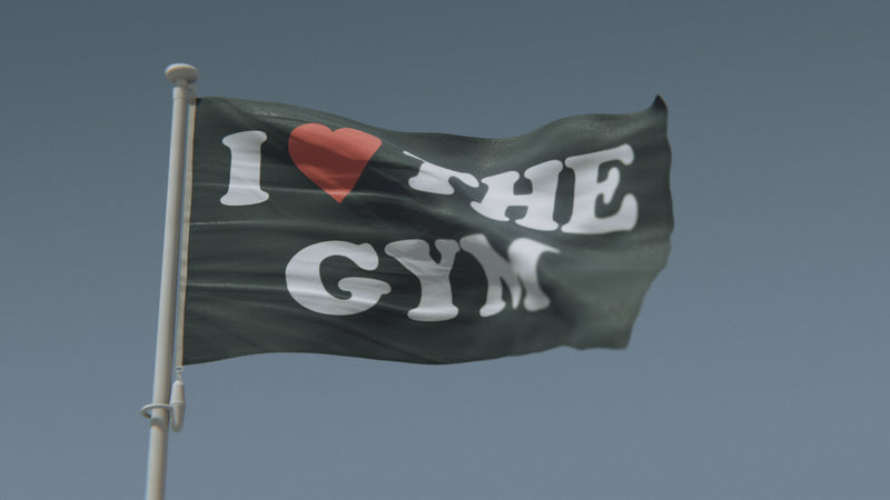- Design: Striking black flag with bold white typography and a red heart accent, shown as "I ❤️ THE GYM" to celebrate your dedication to fitness.