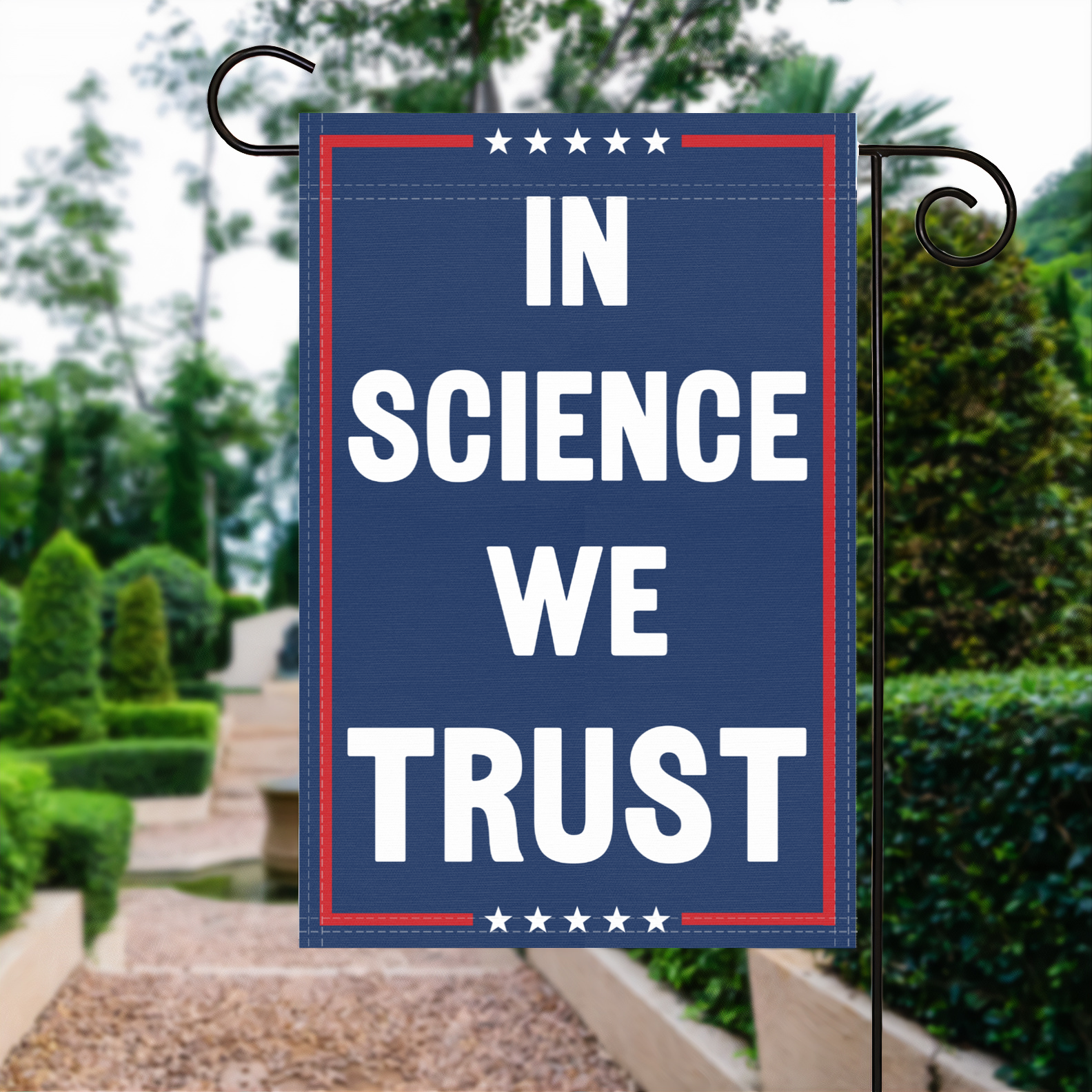 Show your support for science with the In Science We Trust Garden Flag. Designed for outdoor spaces, this Bannerfi flag makes a clear, durable statement in your yard, garden, or patio.