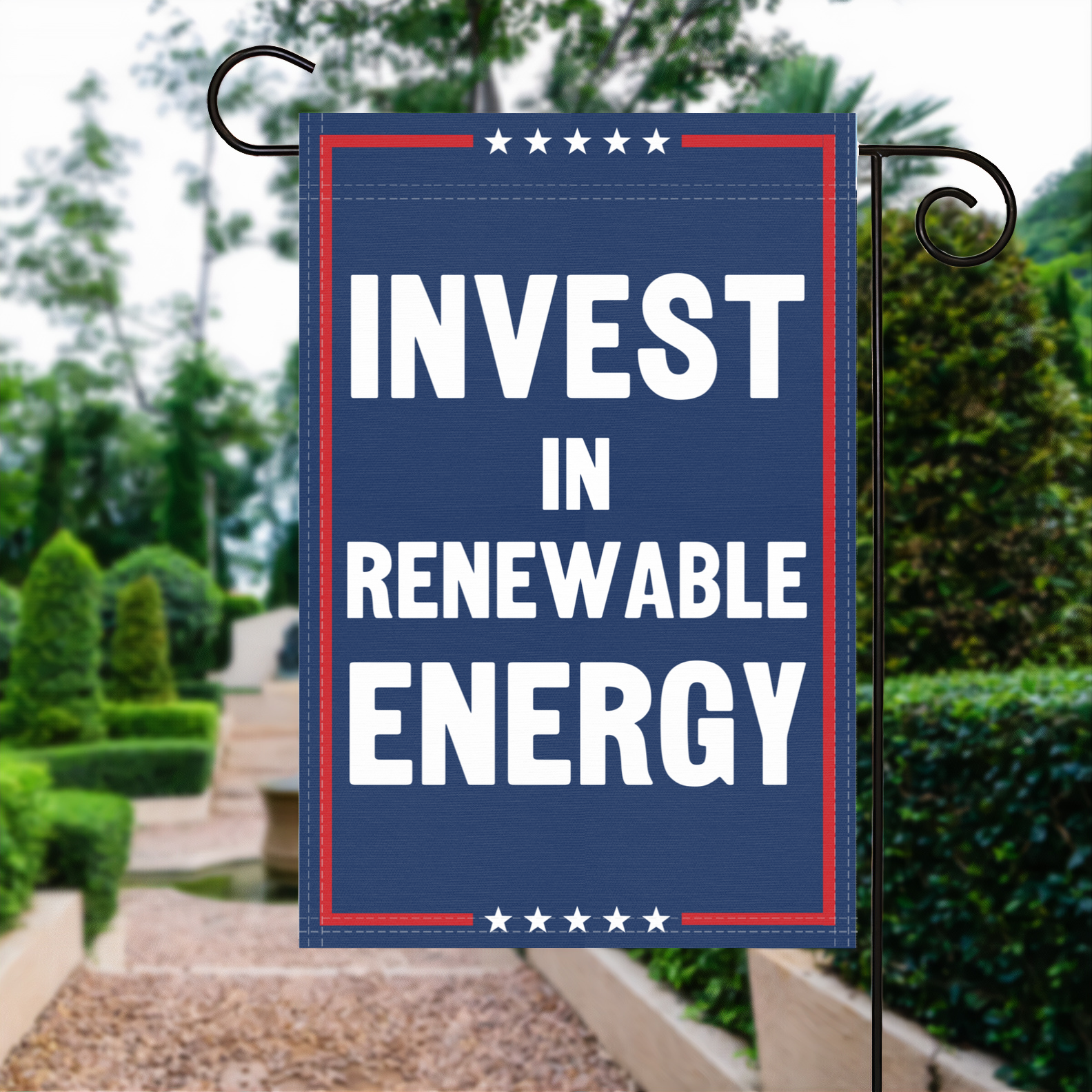 Show your commitment to a cleaner future with the Invest In Renewable Energy Garden Flag from Bannerfi. Designed for eco‑conscious homes and outdoor spaces, this flag makes a clear, impactful statement and invites conversation and action.