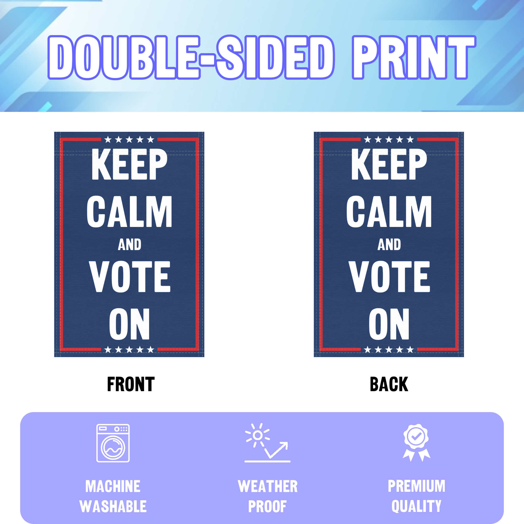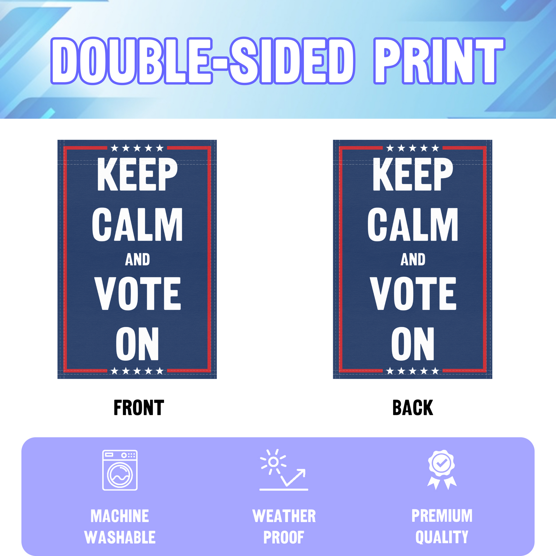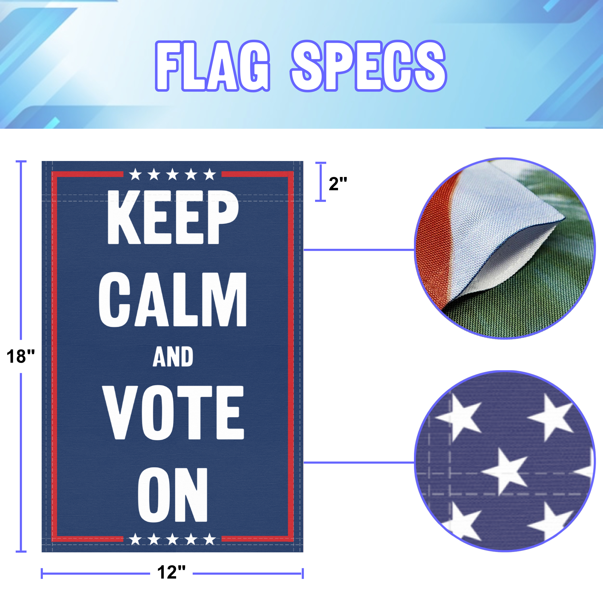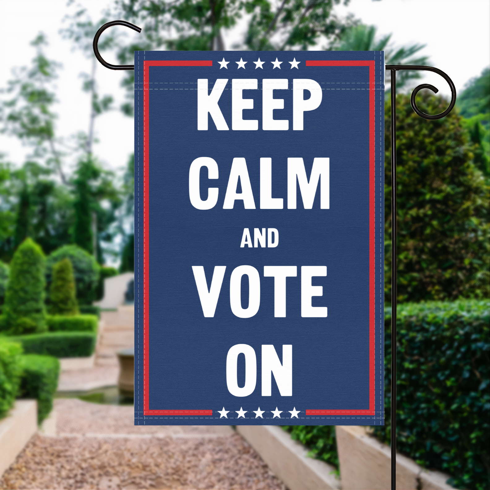 Express your convictions in your outdoor space with the Keep Calm And Vote On Garden Flag. Designed for yards, gardens, and patios, this 12x18 inch flag makes a bold statement that’s both stylish and purpose-driven.