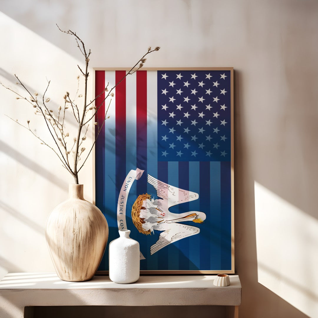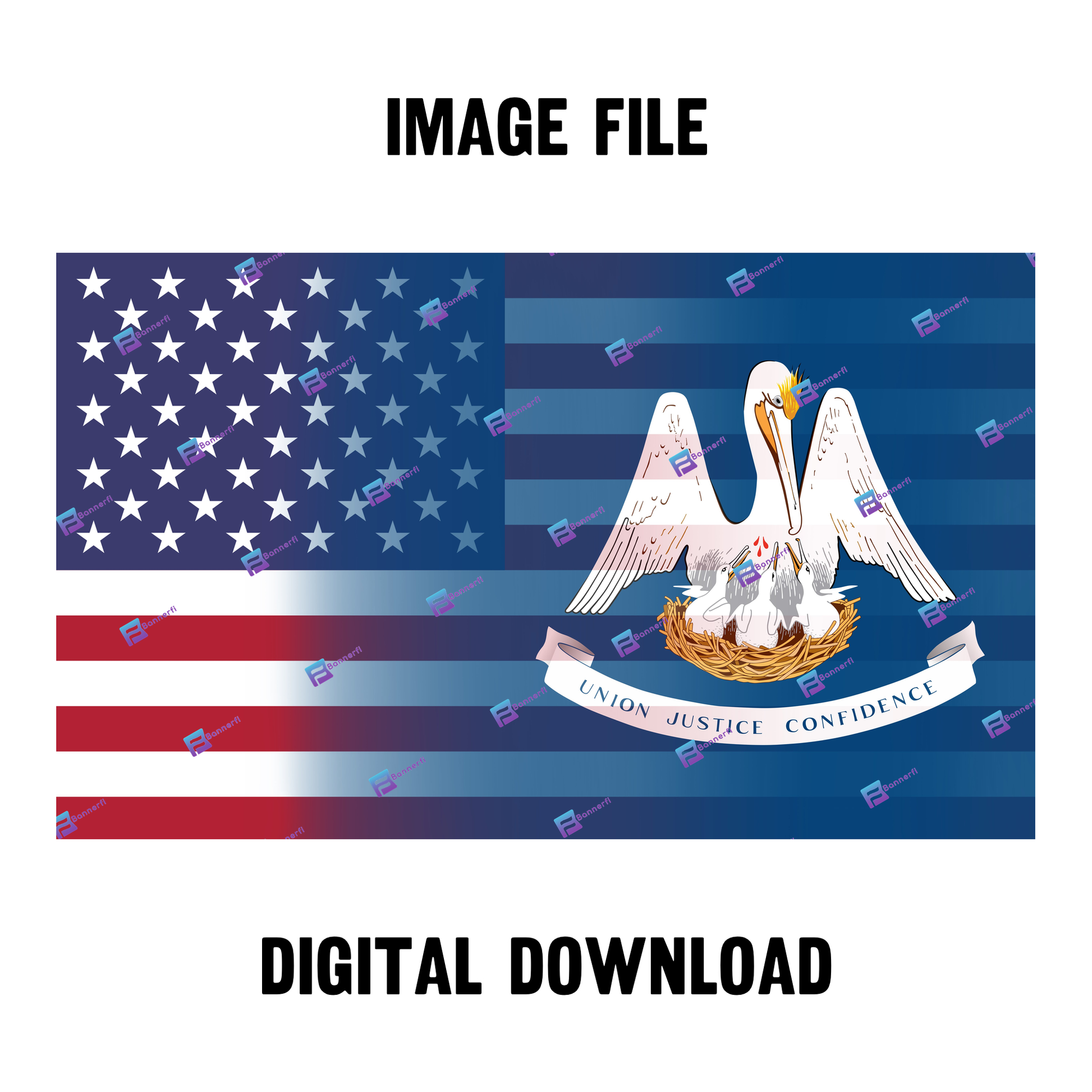 Celebrate pride with a bold digital artwork that fuses the U.S. flag with Louisiana’s state flag. Designed for creatives and patriots, this versatile design is perfect for posters, apparel prints, web banners, hats, and more. From Bannerfi, you’ll receive an instant download—your file is ready as soon as checkout completes.