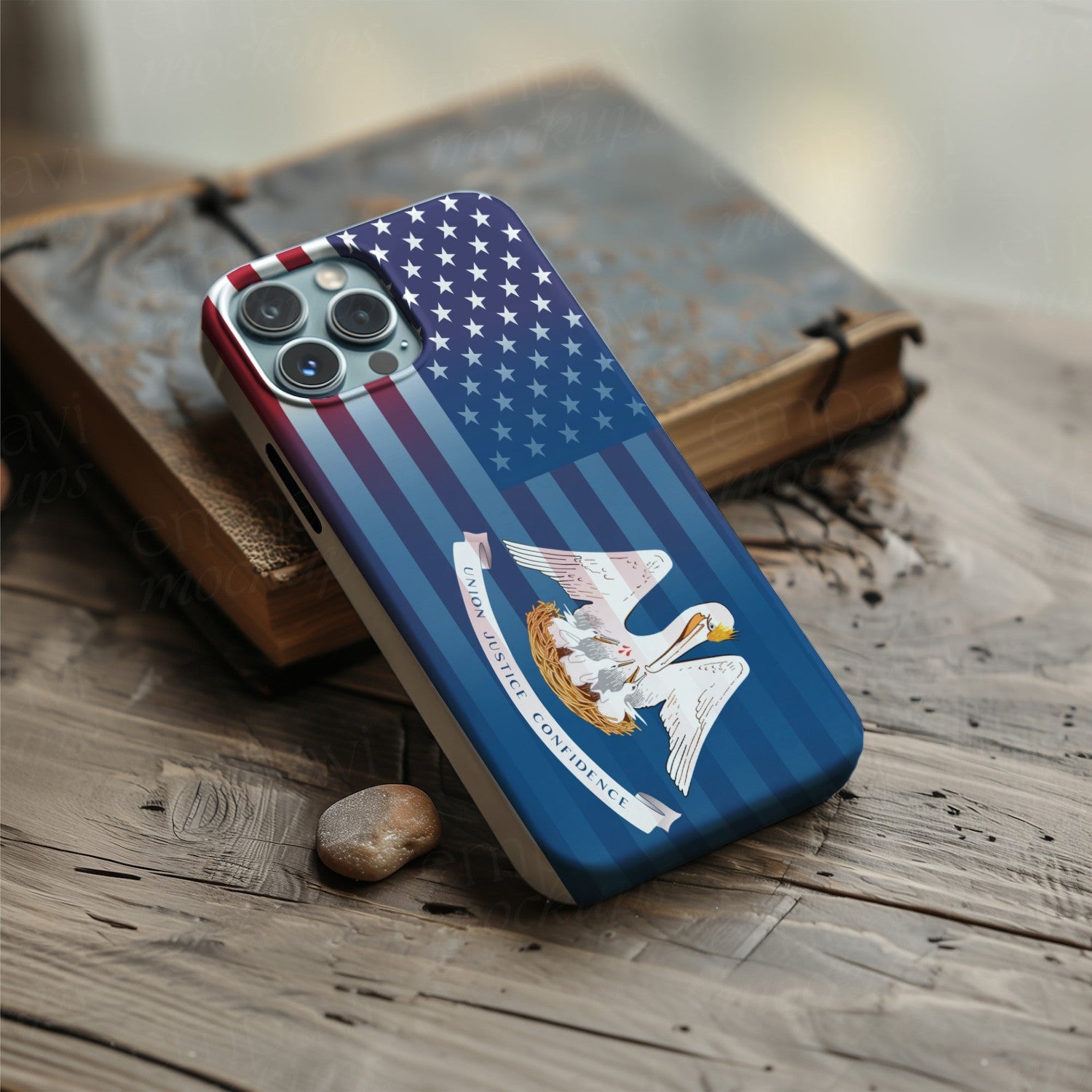 - Design details: A seamless blend of the United States Stars & Stripes with Louisiana’s state flag, including the pelican emblem and motto elements visible in the artwork.