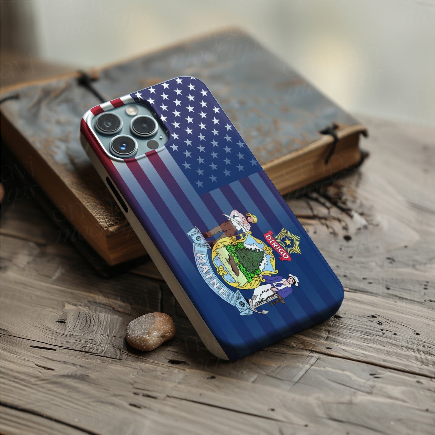 - Design: Seamless blend of the U.S. stars & stripes with the Maine state flag crest