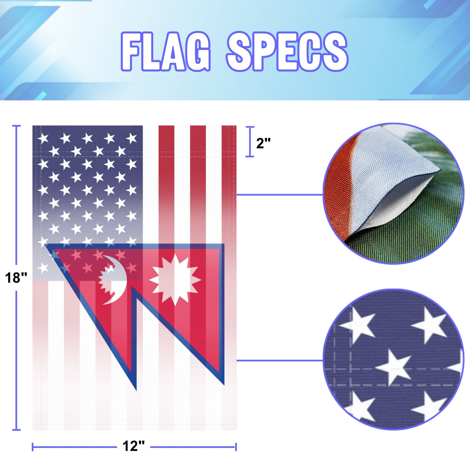 Introduction Celebrate Nepalese-American pride with a garden flag designed for outdoor display. This 12x18 inch Bannerfi flag blends heritage and unity, making it perfect for yards, gardens, patios, and welcome displays year-round.