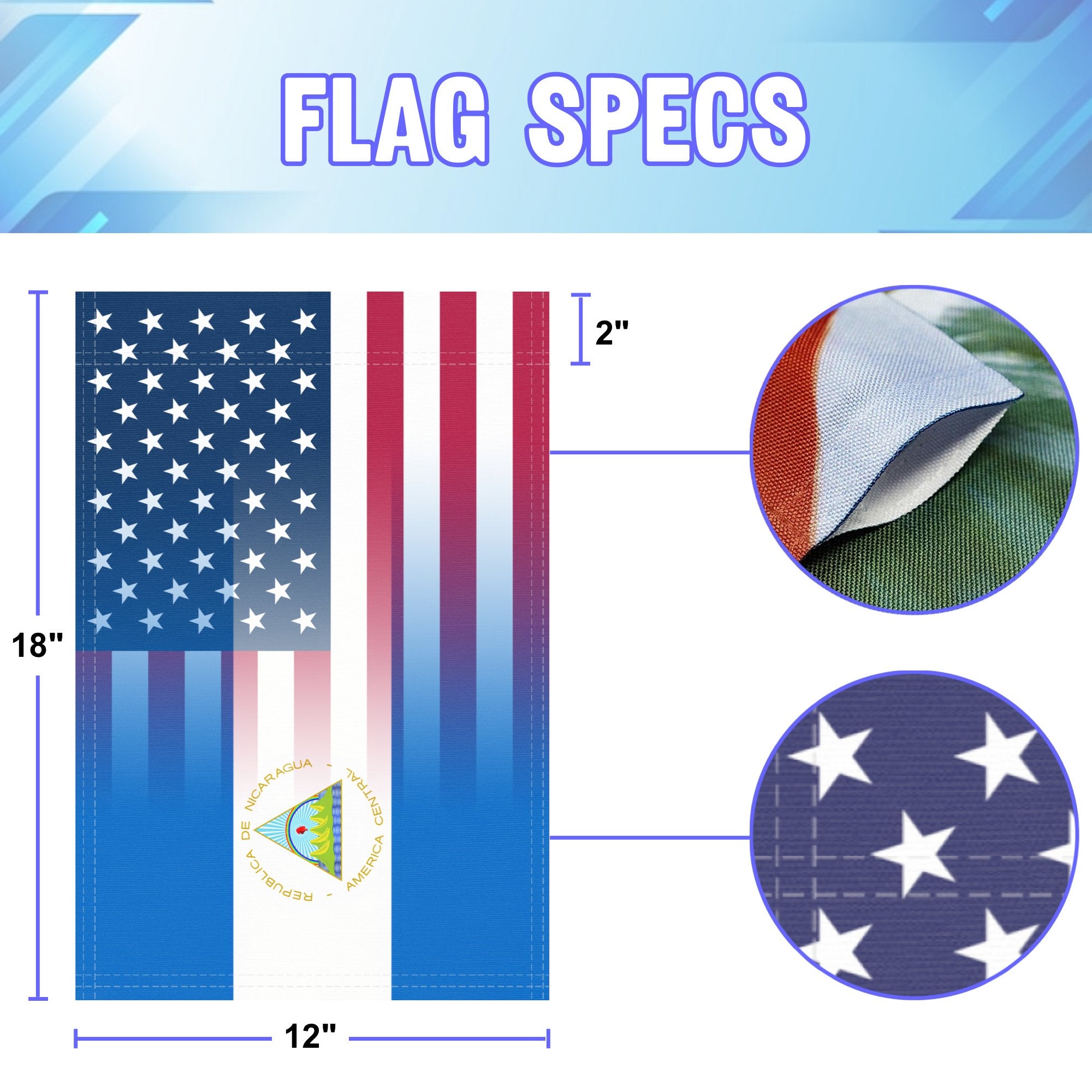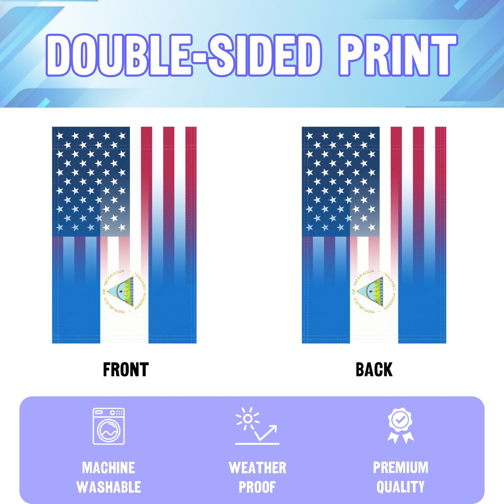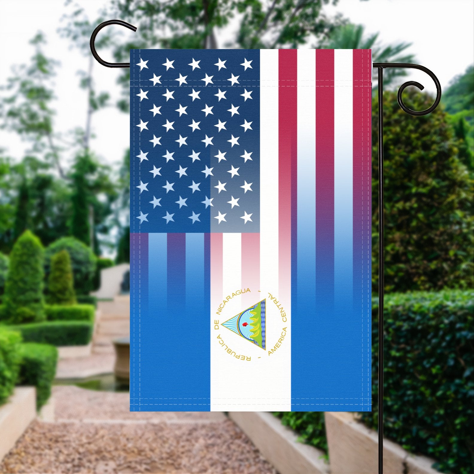 Celebrate your Nicaraguan American heritage with this 12x18 inch garden flag, crafted for outdoor display in yards, gardens, and patios. A vivid tribute to culture and unity, it’s designed to be enjoyed from every direction.