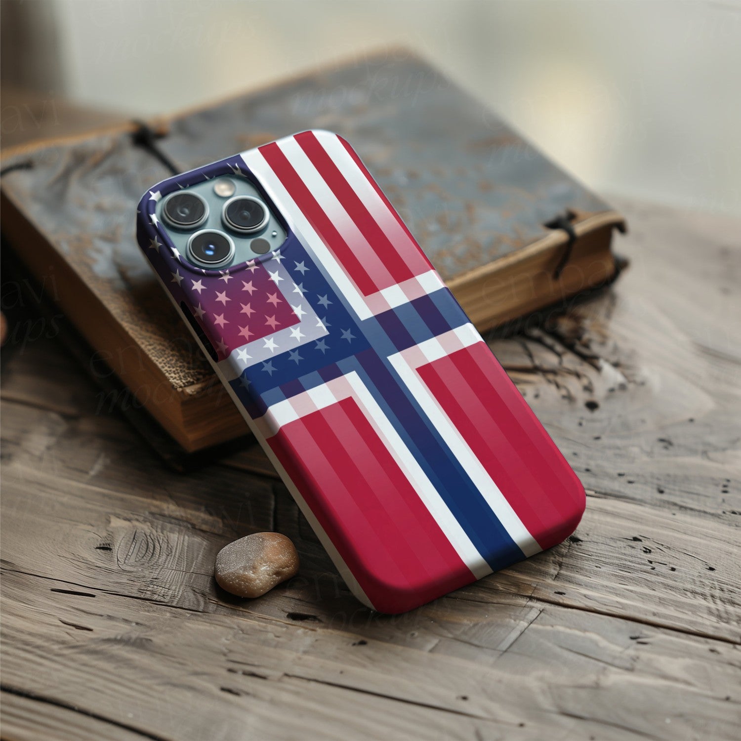 - Subject: A single, cohesive design that blends the United States flag with the Norwegian flag motif