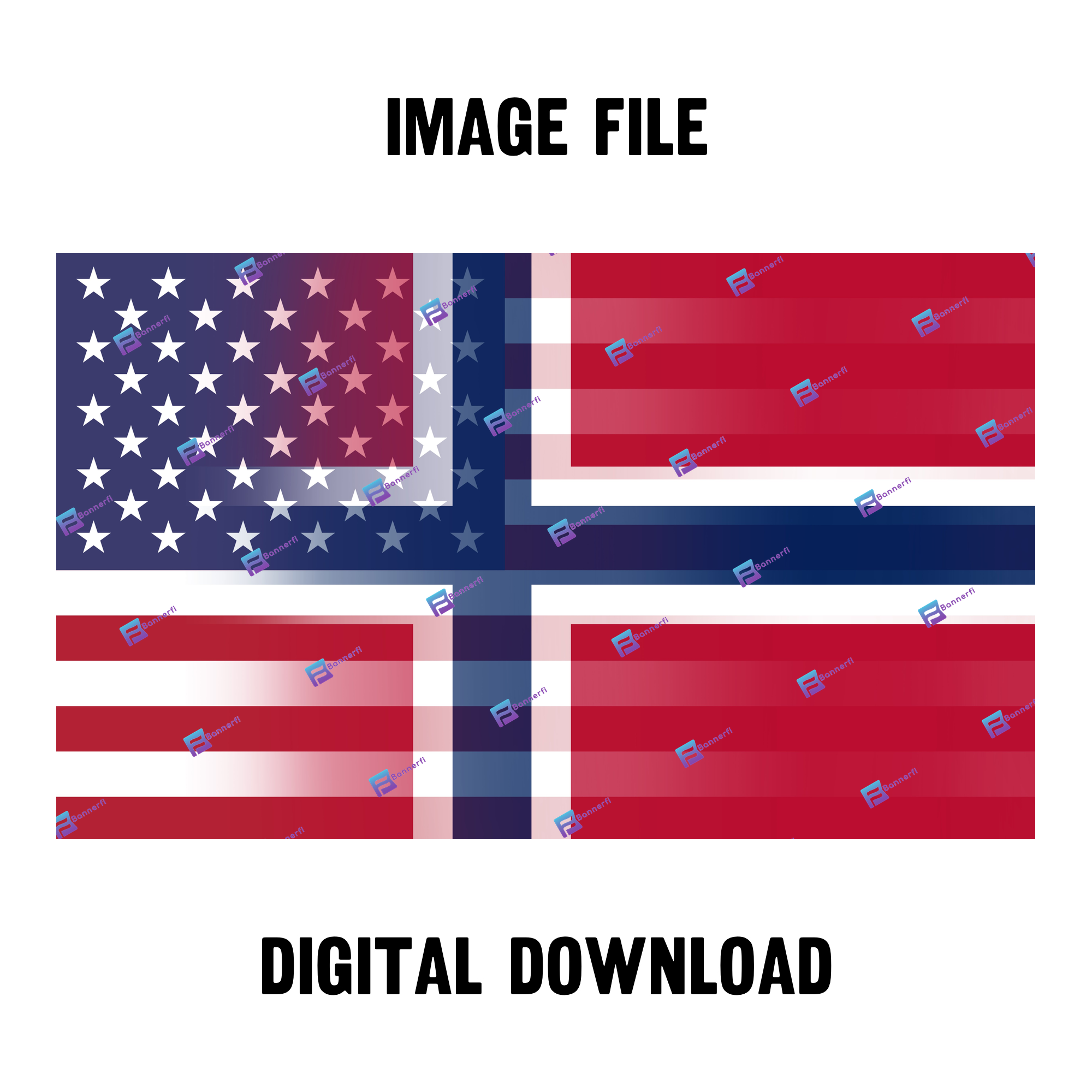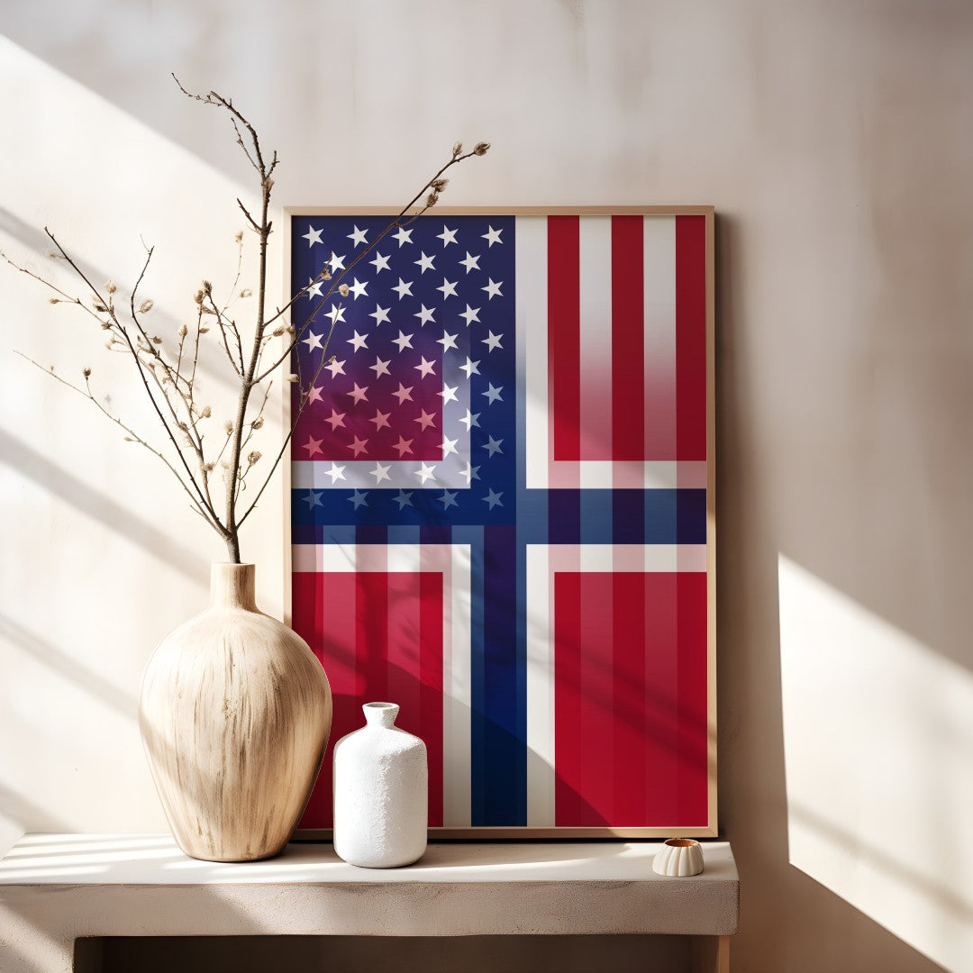 Celebrate dual heritage with a digital artwork that seamlessly fuses the stars and stripes of the United States with the bold emblem of the Norwegian flag. Ideal for posters, prints, social graphics, and digital displays, this high-quality design is ready to elevate your projects.
