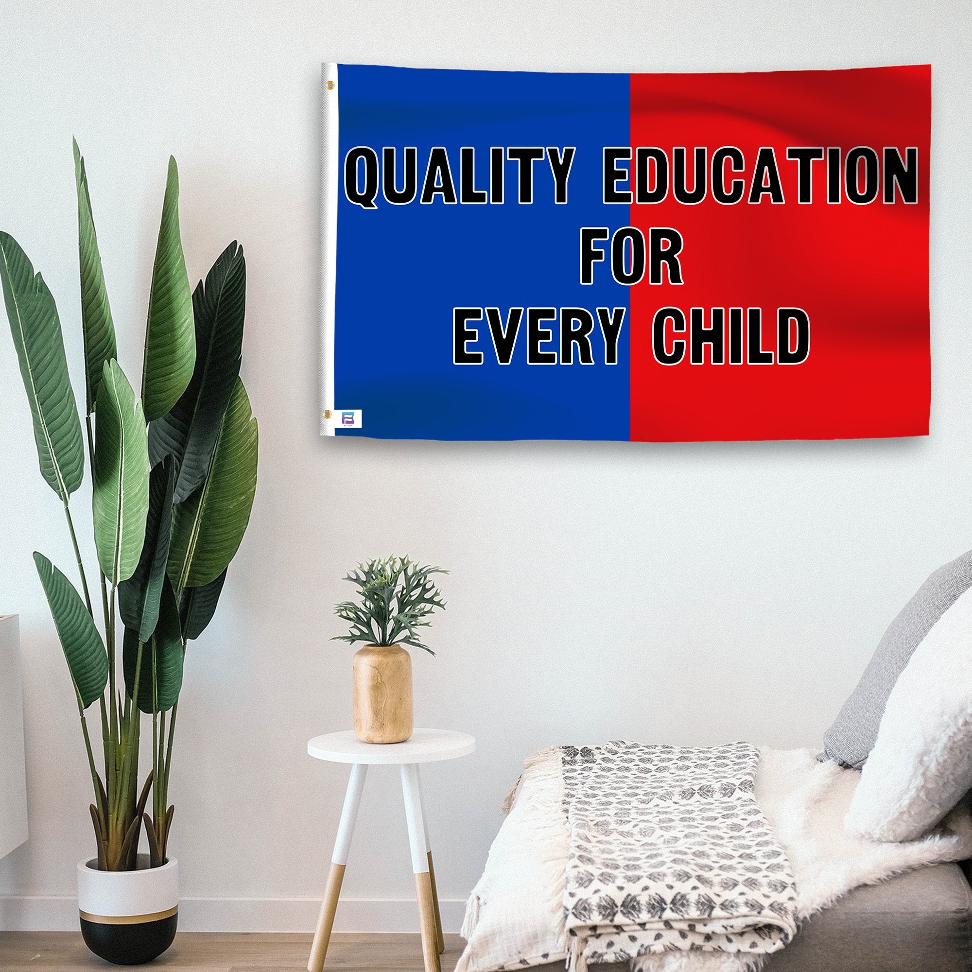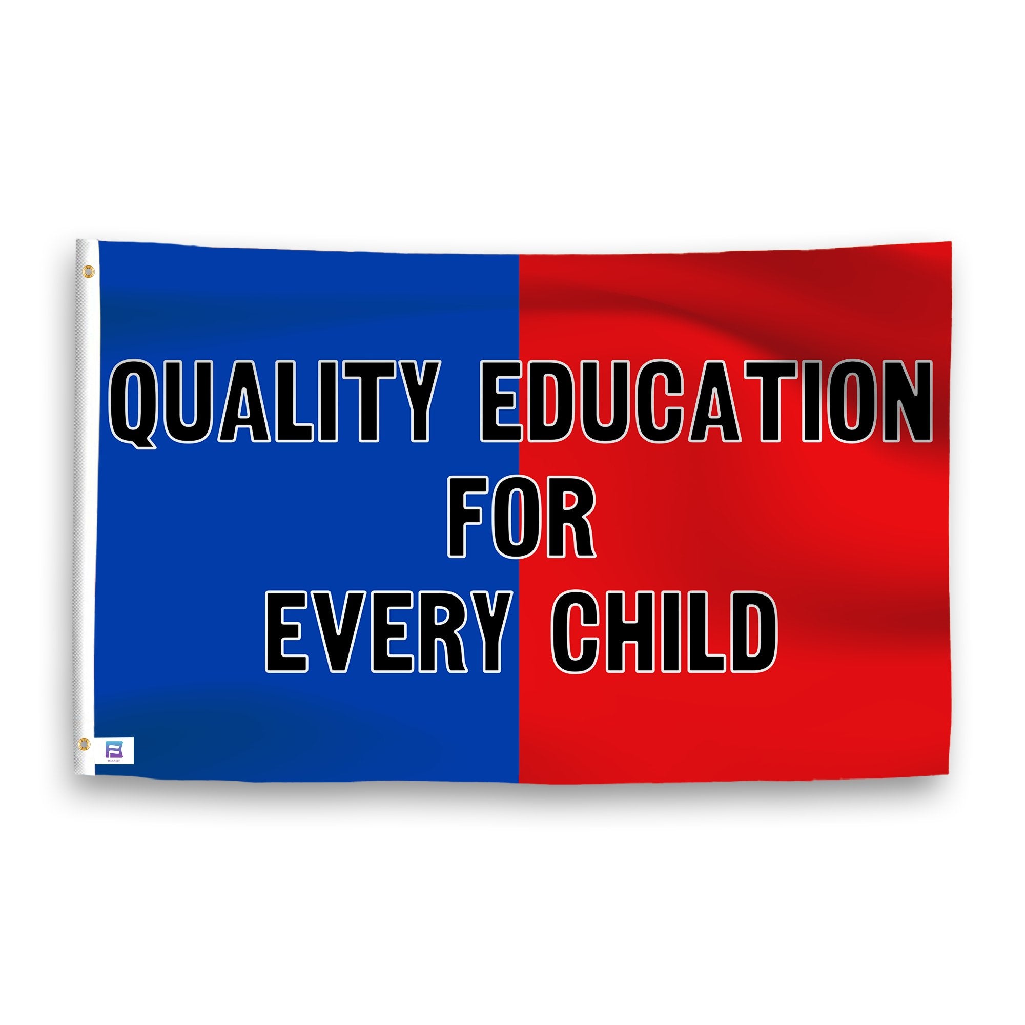 Show your commitment to education advocacy with the Quality Education Flag from Bannerfi. Designed for individuals, schools, organizations, and event organizers, this flag broadcasts a bipartisan message with clarity and lasting quality—perfect for rallies, meetings, classrooms, or office displays.