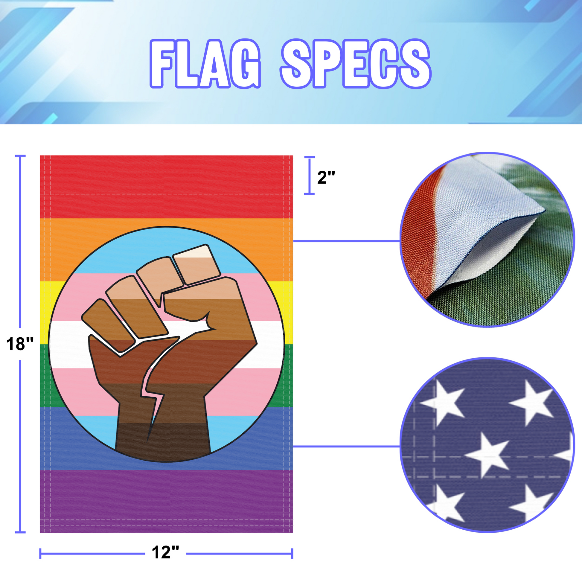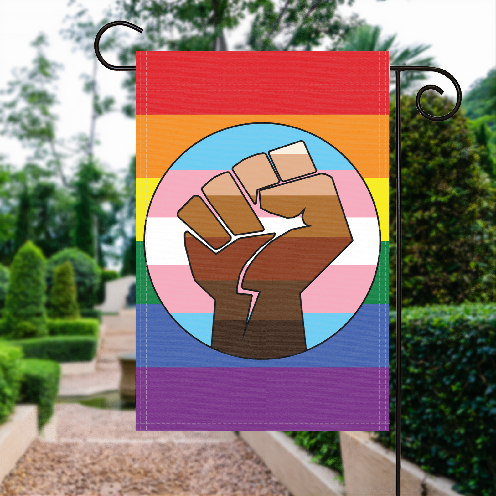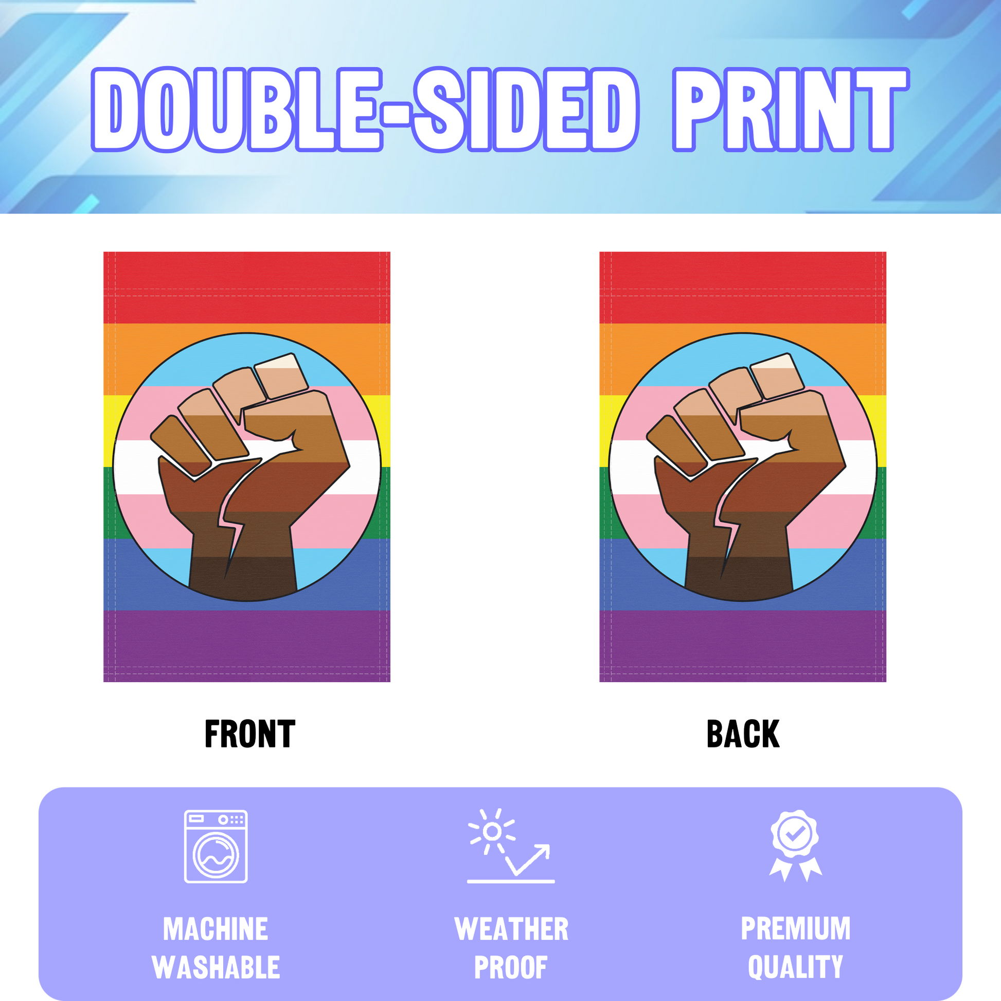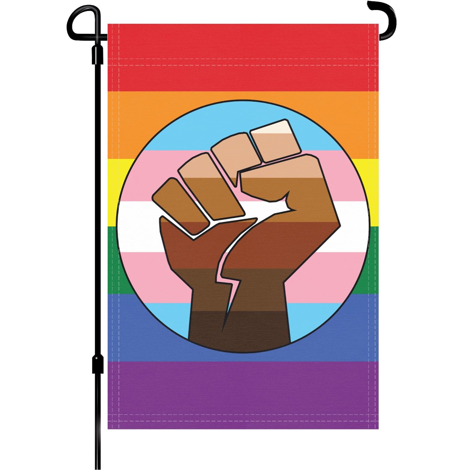 Celebrate diversity and pride with the Resist Fist Trans Pride Garden Flag from Bannerfi. This 12x18 inch outdoor flag is designed for durability and visibility, making a bold statement in your yard, garden, or patio while integrating seamlessly with standard garden flag poles.