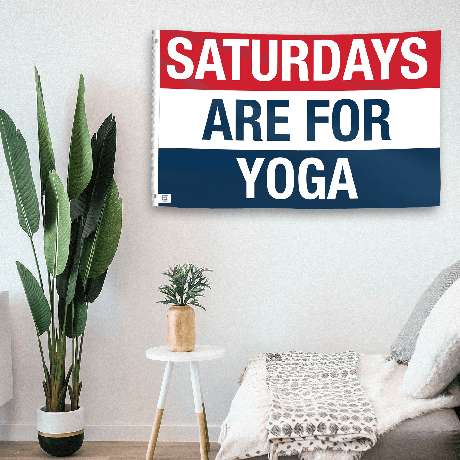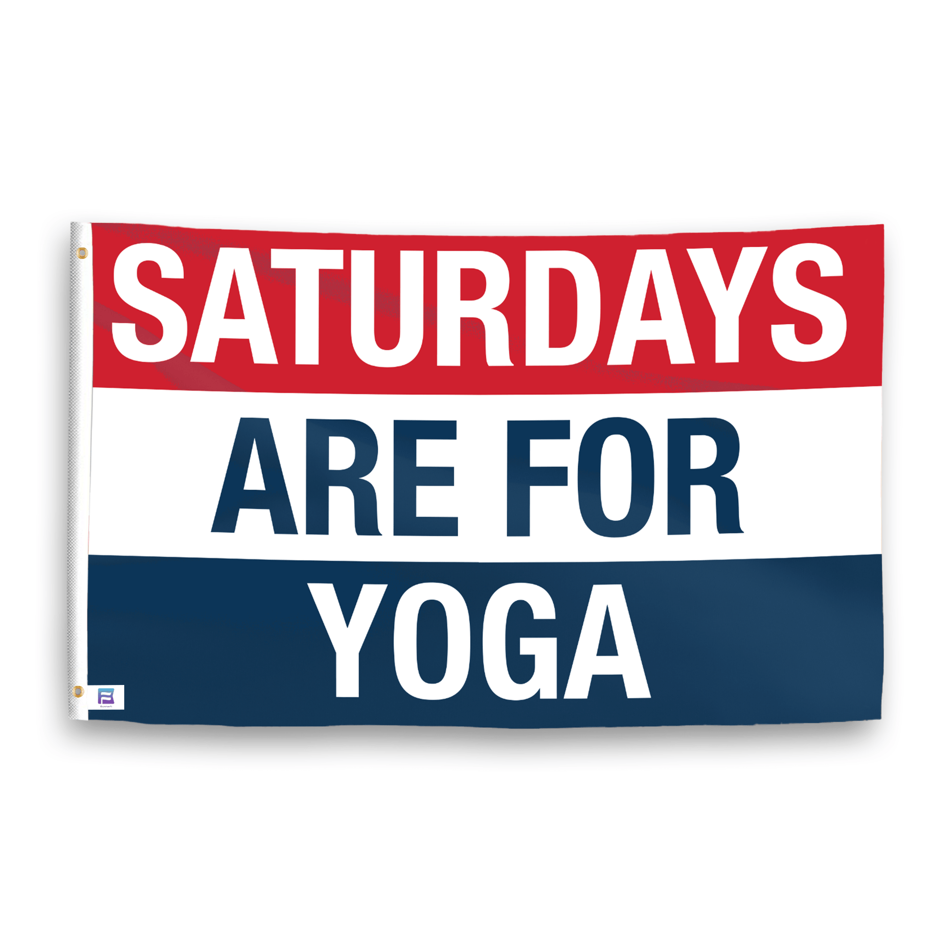 Express your love for yoga with the Saturdays Are for Yoga Flag — a durable outdoor flag from Bannerfi designed for yoga enthusiasts, home decor, and event displays. This bold flag delivers clear visibility and a stylish statement, whether you hang it on a wall, display it on a flagpole in the yard, or take it to a gathering.