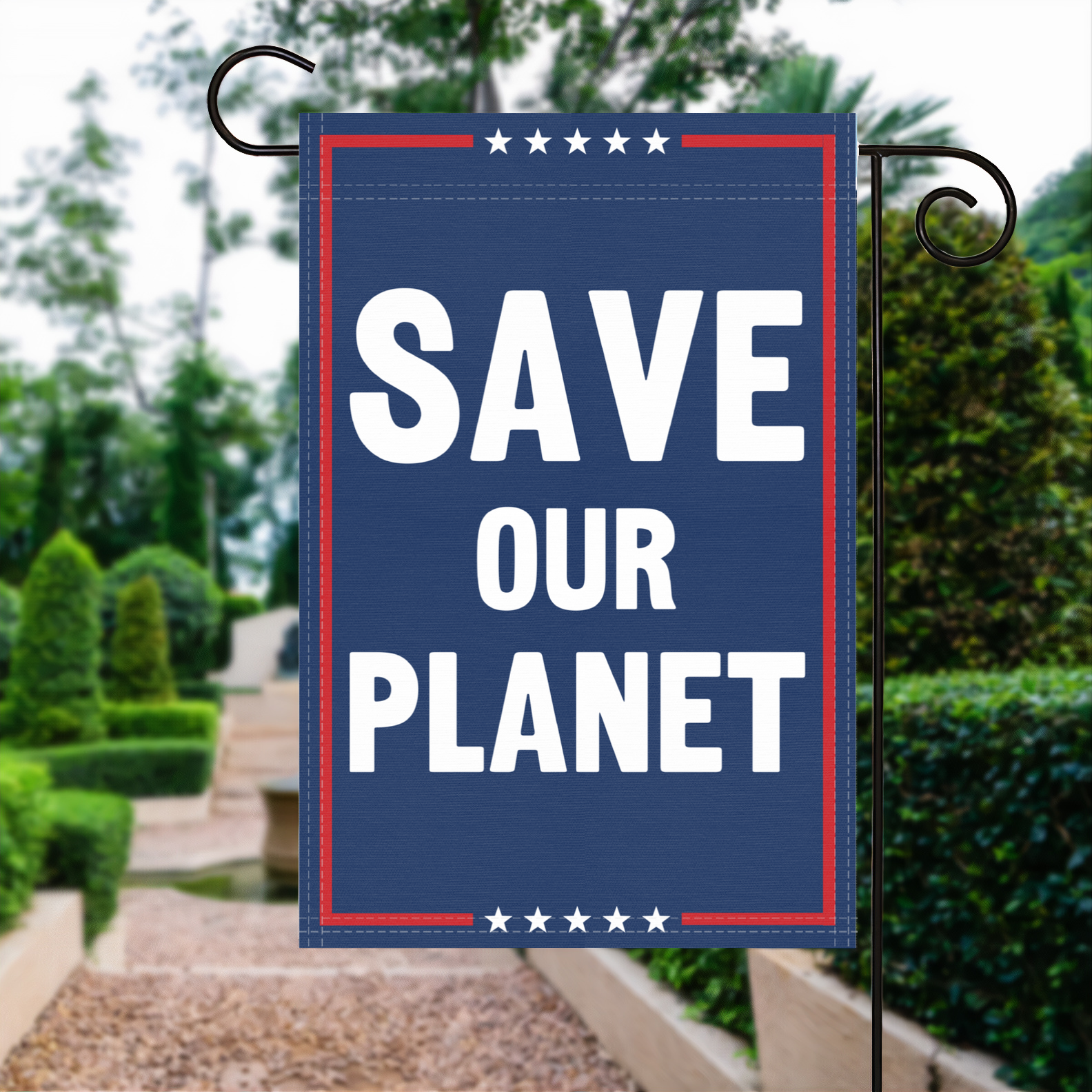 Make a clear statement about environmental stewardship with the Save Our Planet Garden Flag. Designed for outdoor display, it’s ideal for gardens, yards, or patios and helps you share your message with neighbors and passersby.