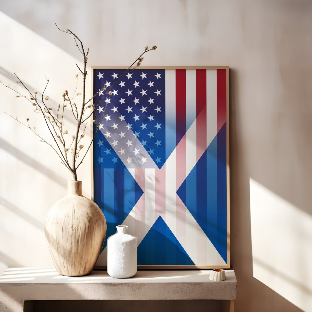 Celebrate dual heritage with our Scottish American Flag Design, a digital artwork that seamlessly blends the United States flag with the bold Scottish Saltire. Perfect for posters, prints, social graphics, and a variety of creative projects, this high-resolution JPEG is prepared for instant download after checkout.