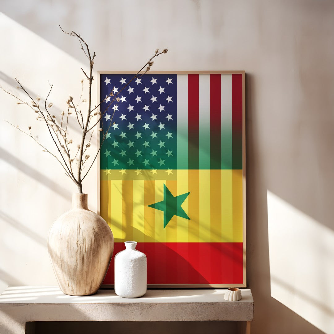 - Design type: A cohesive composite that fuses elements of the U.S. flag with the Senegal flag for a unified, artwork-ready statement