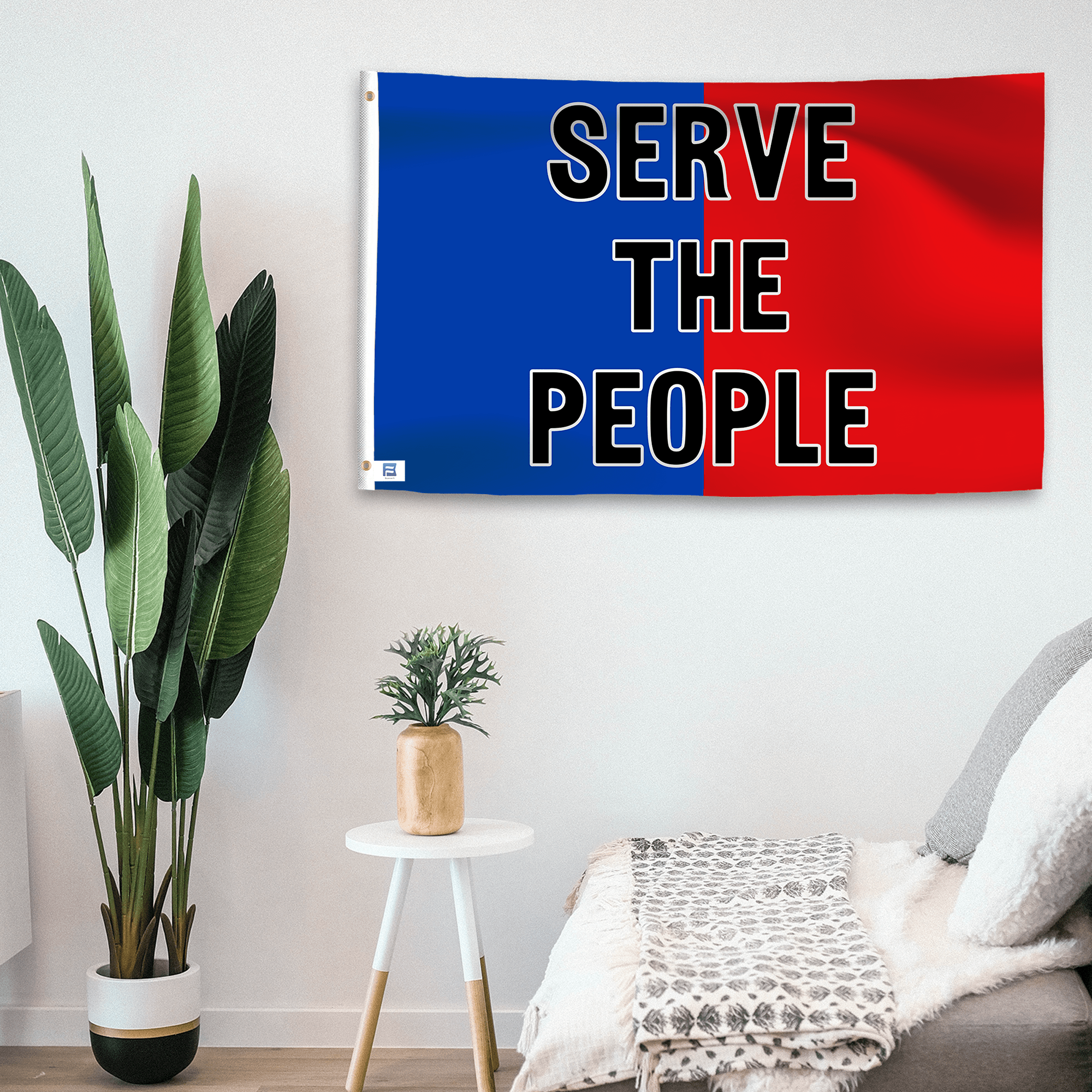Make a bold political statement with the Serve the People Flag from Bannerfi. Designed for rallies, home displays, and public meetings, this durable polyester flag delivers strong visibility and long-lasting color. Its striking blue-and-red field and prominent lettering ensure your message stands out, wherever it’s displayed.