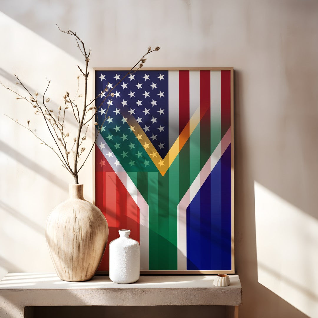 Celebrate dual heritage with a striking digital artwork that blends the United States flag’s stars and stripes with the bold emblem of the South African flag. Designed for creators, educators, and home-decor enthusiasts, this South African American Flag Design offers a unique, ready-to-use graphic from Bannerfi.